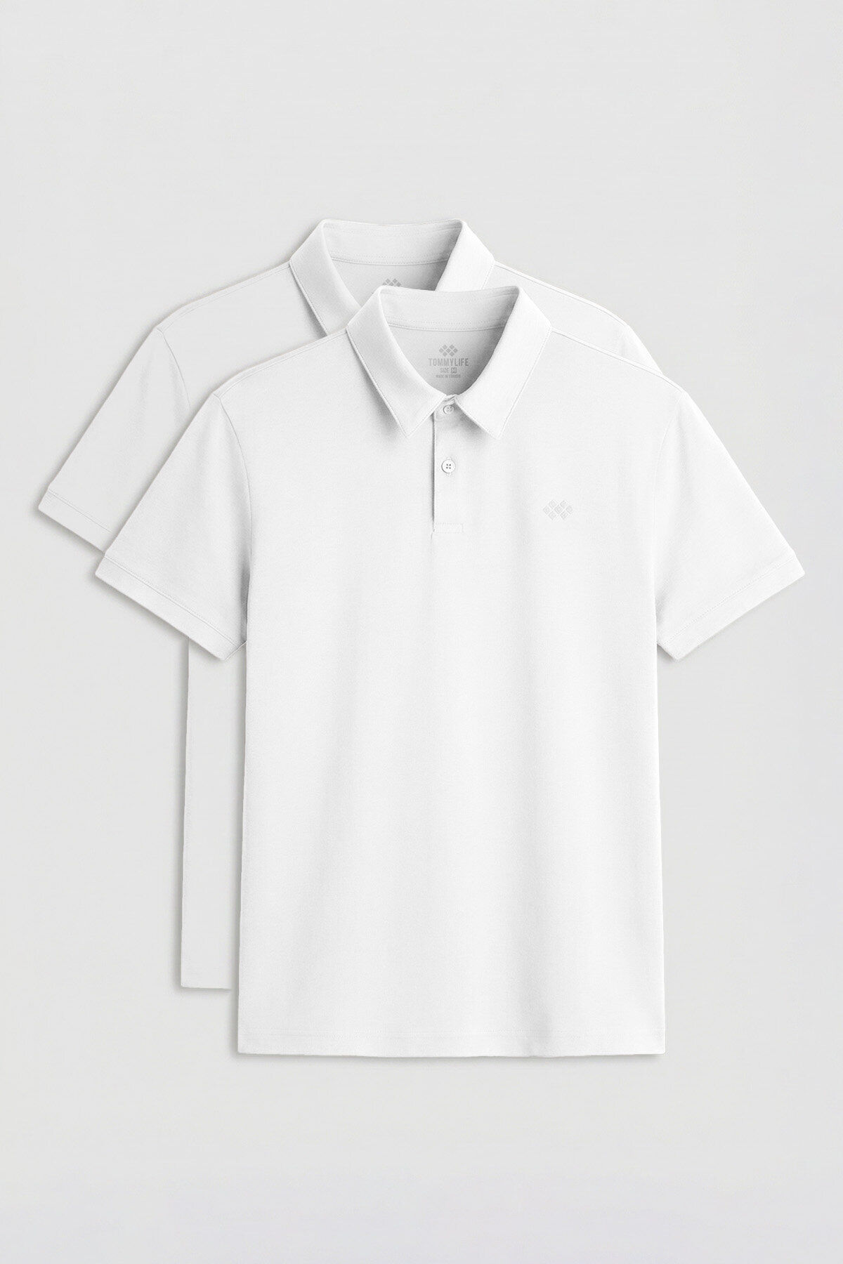 Standart Fit Basic Polo Yaka 2li Paket Beyaz Erkek T-Shirt - 87748