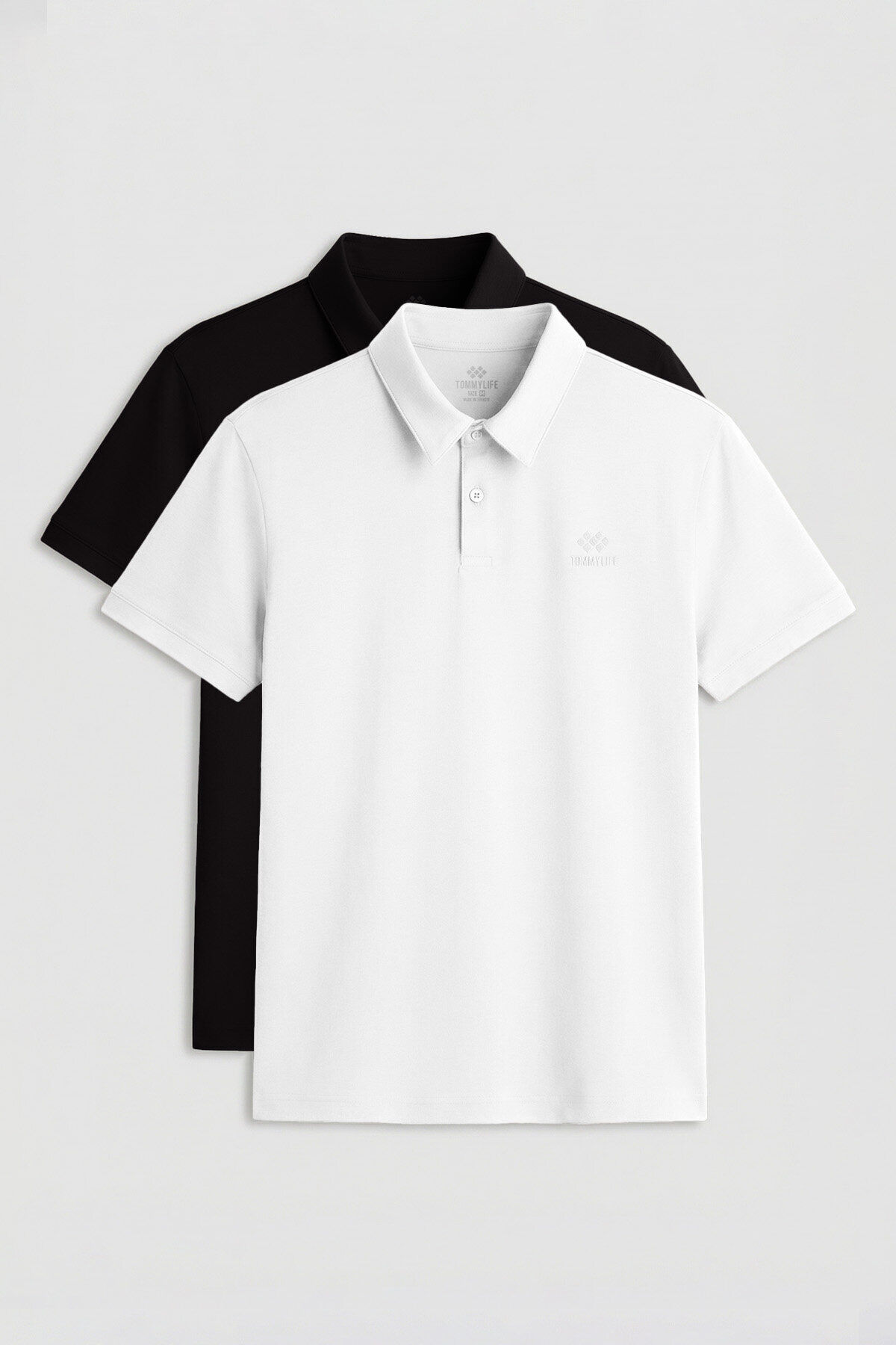 Standart Fit Basic Polo Yaka 2li Paket Siyah-Beyaz Erkek T-Shirt - 87748