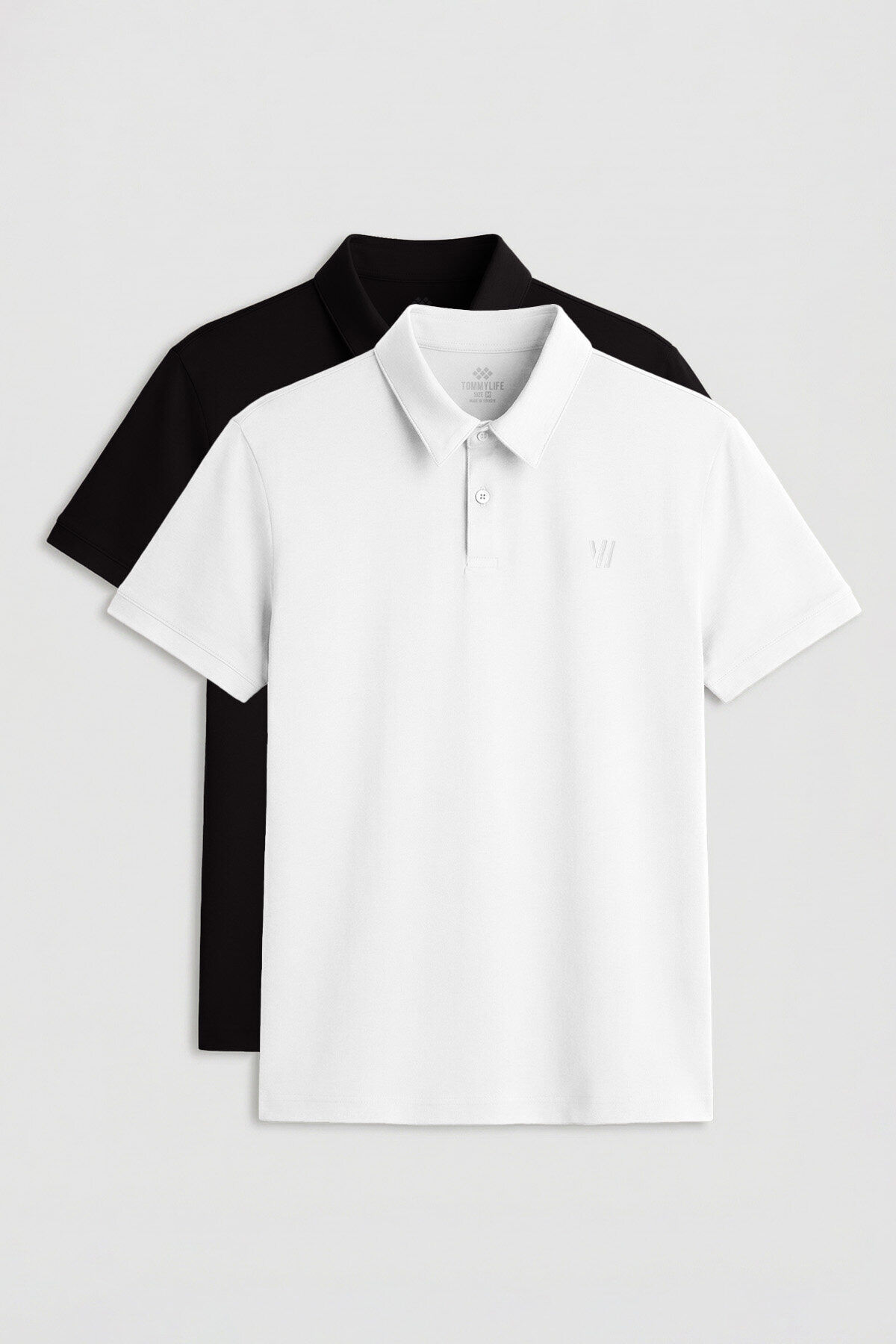 Standart Fit Basic Polo Yaka 2li Paket Siyah-Beyaz Erkek T-Shirt - 87768