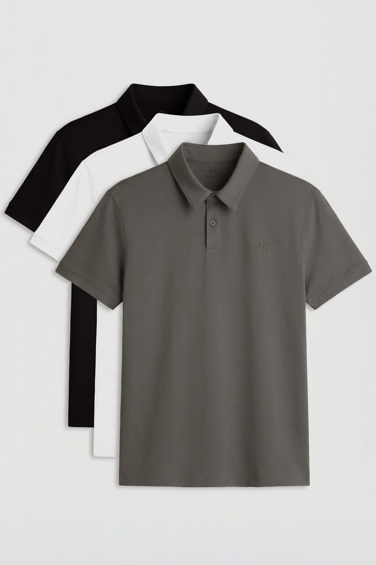 Standart Fit Basic Polo Yaka 3lü Paket Siyah-Beyaz-Çağla Erkek T-Shirt 87768