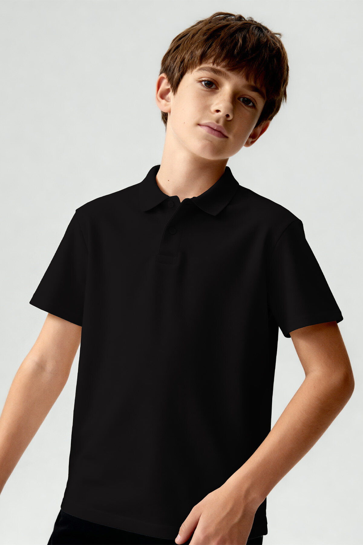 Standart Fit Basic Polo Yaka 3lü Paket Siyah-Haki-Ekru Unisex Çocuk T-Shirt - 11330