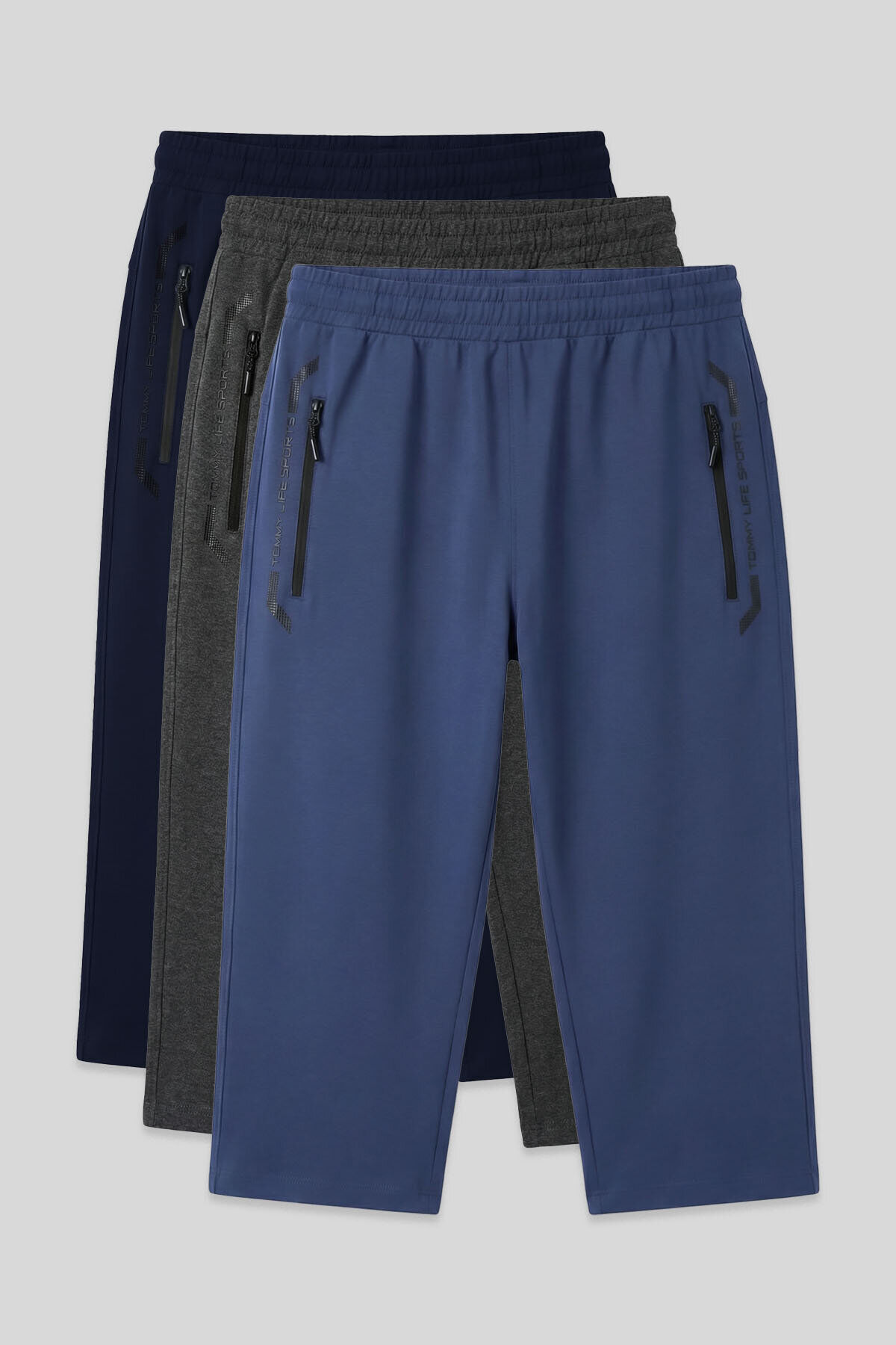 Standart Kalıp 3lü Paket Lacivert-Antrasit Melanj-Petrol Erkek Kapri - 83091