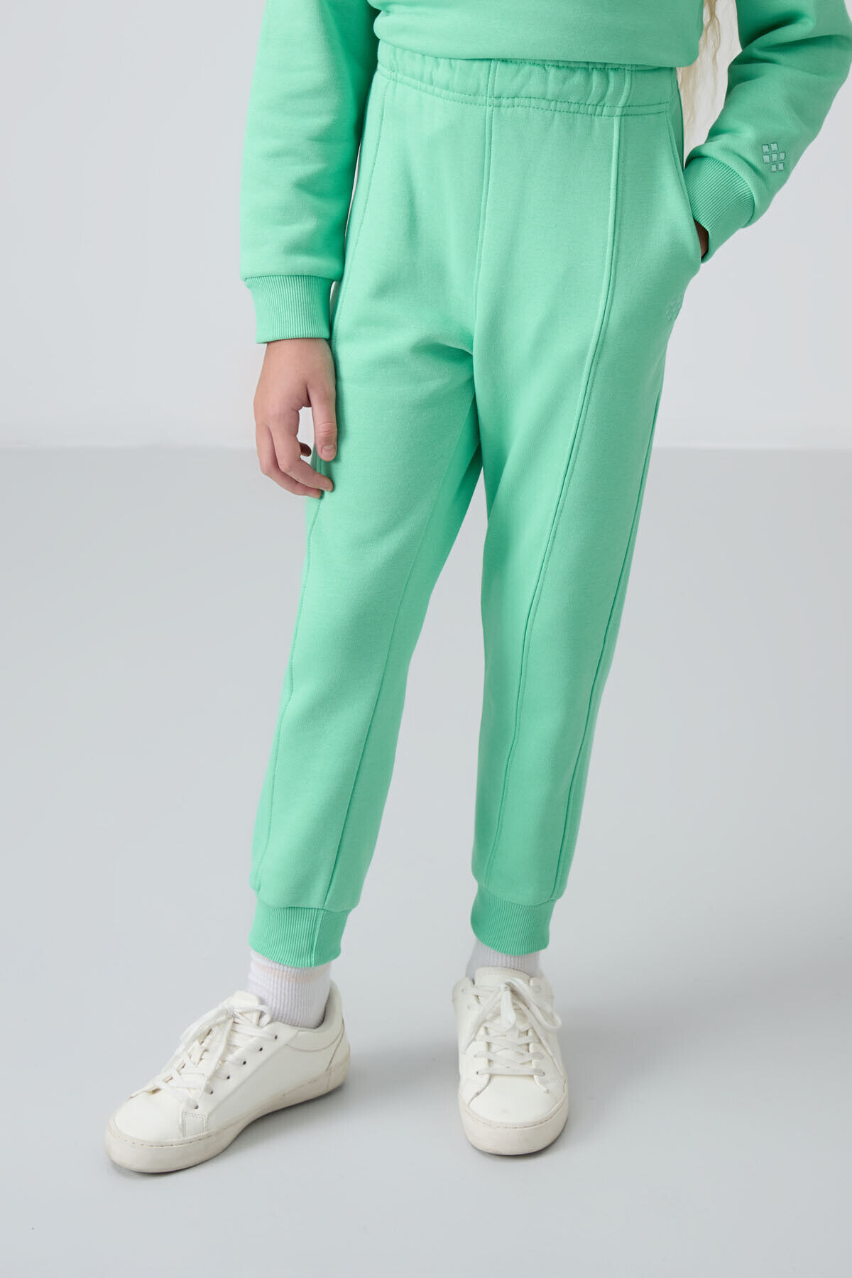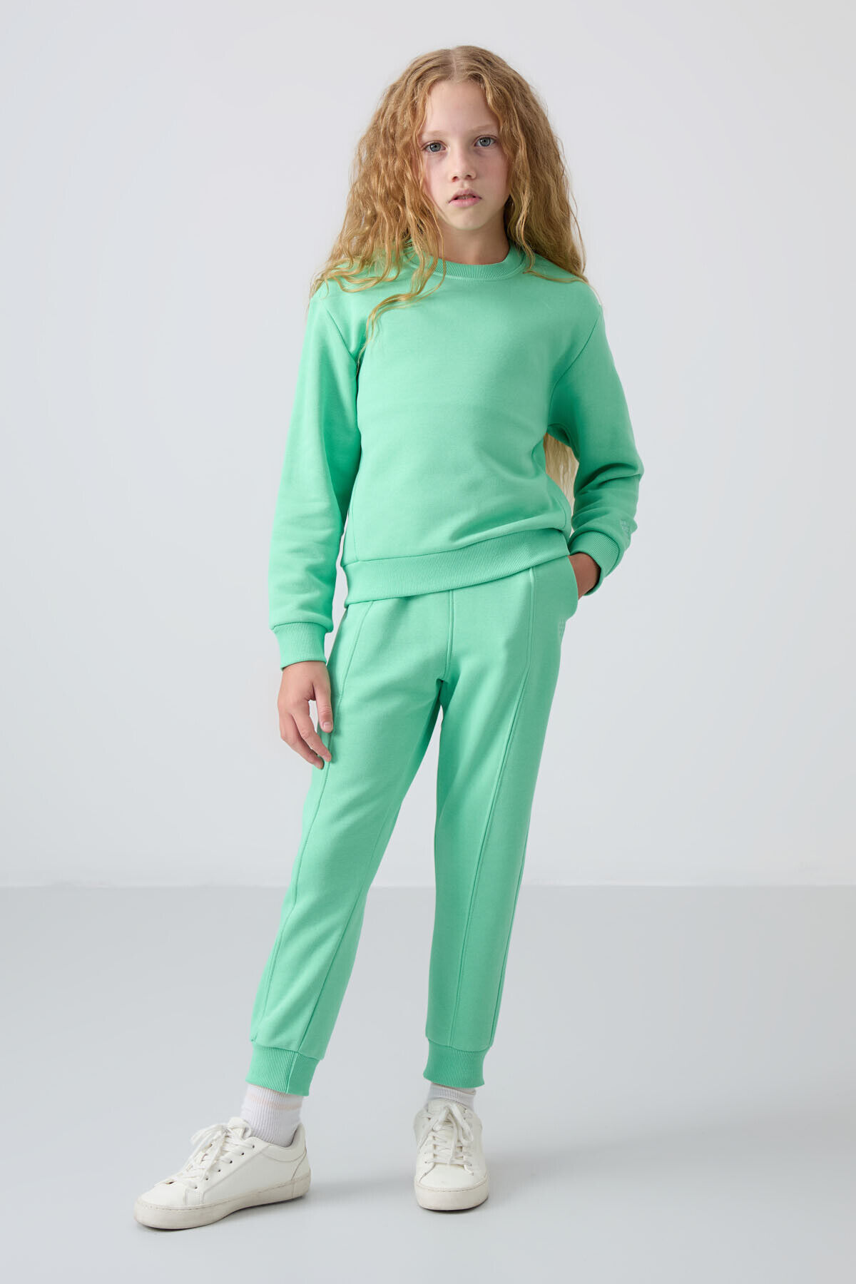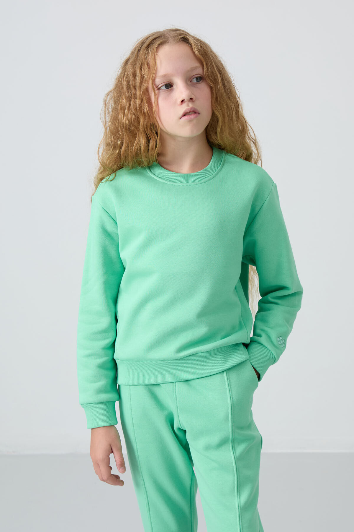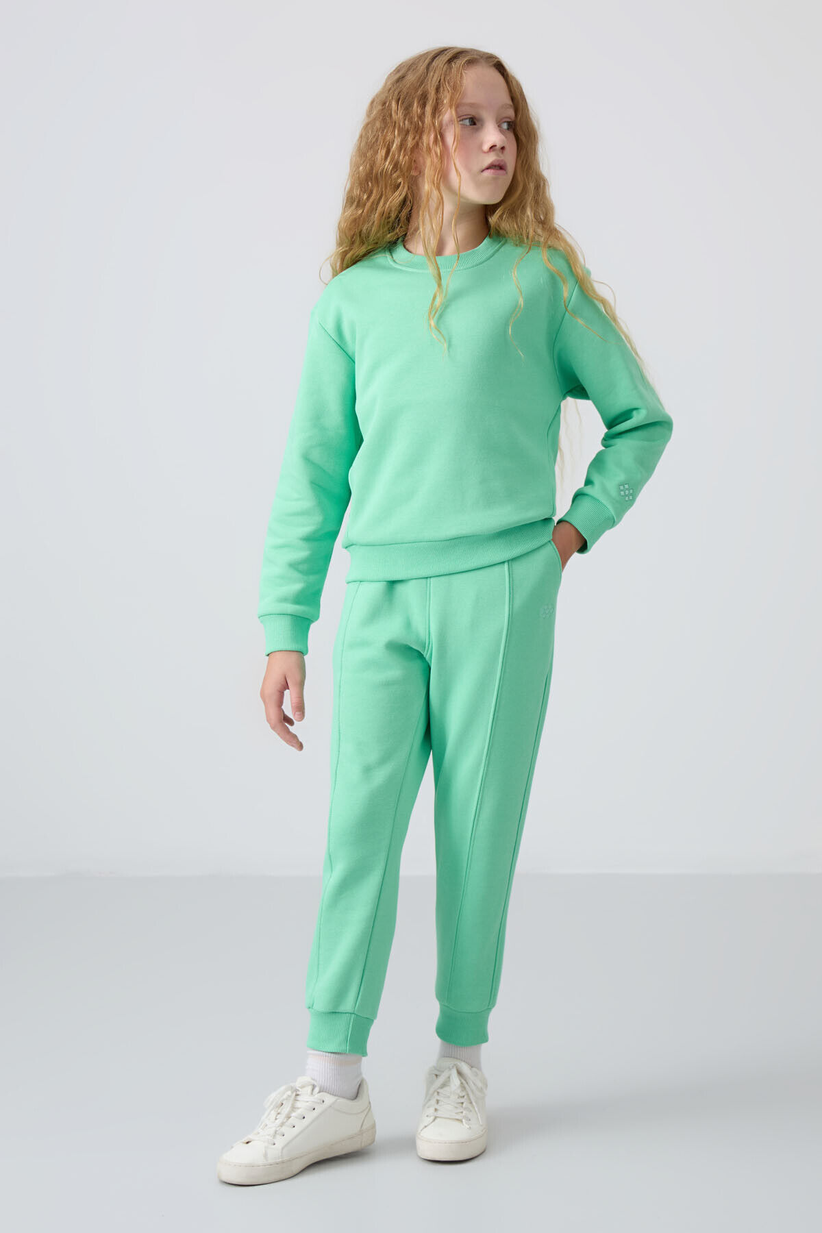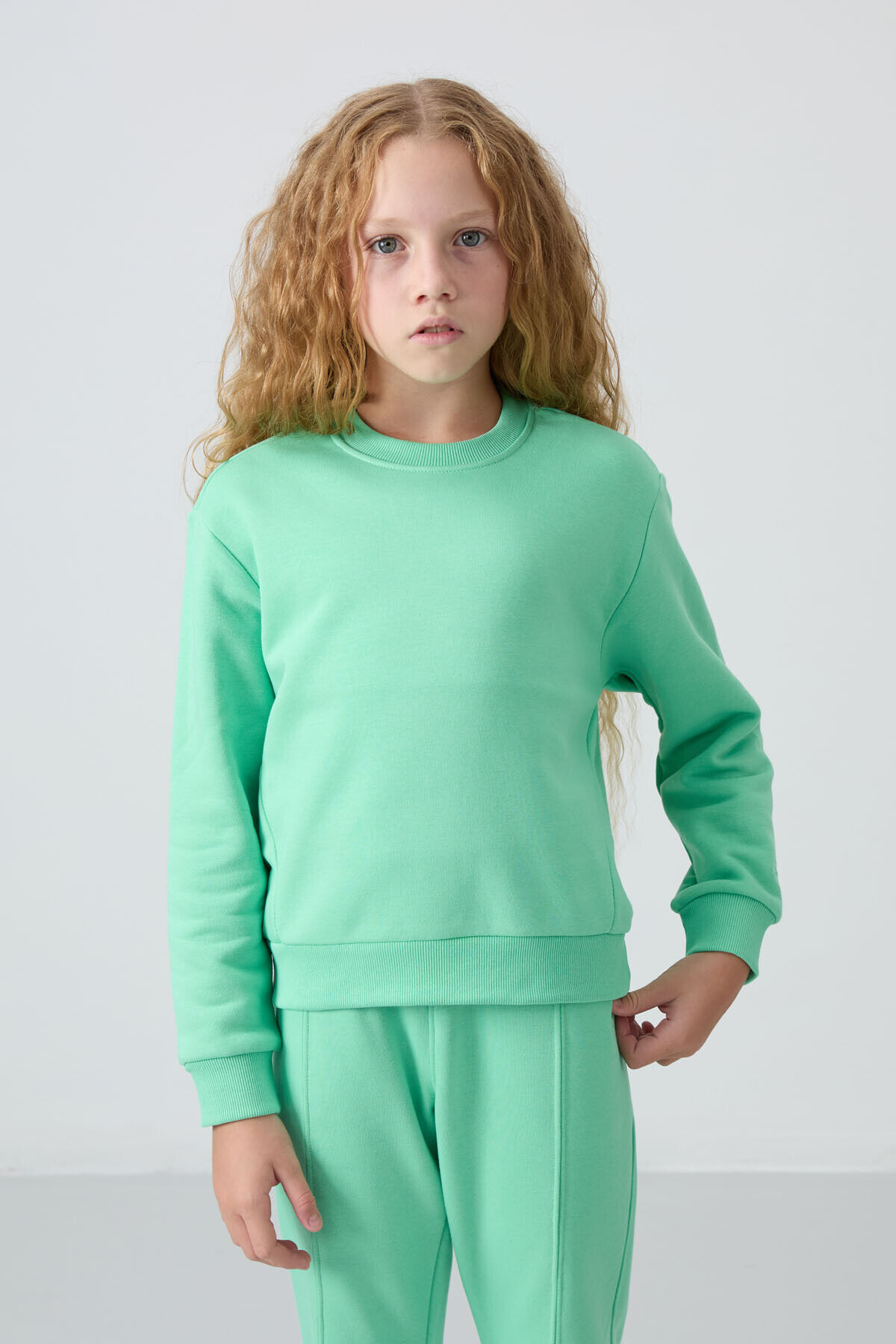 TommyLife Su Yeşil Pamuklu İçi Tüylü Yumuşak Dokulu Oversize Nakışlı Kız Çocuk Eşofman Takım - 75145