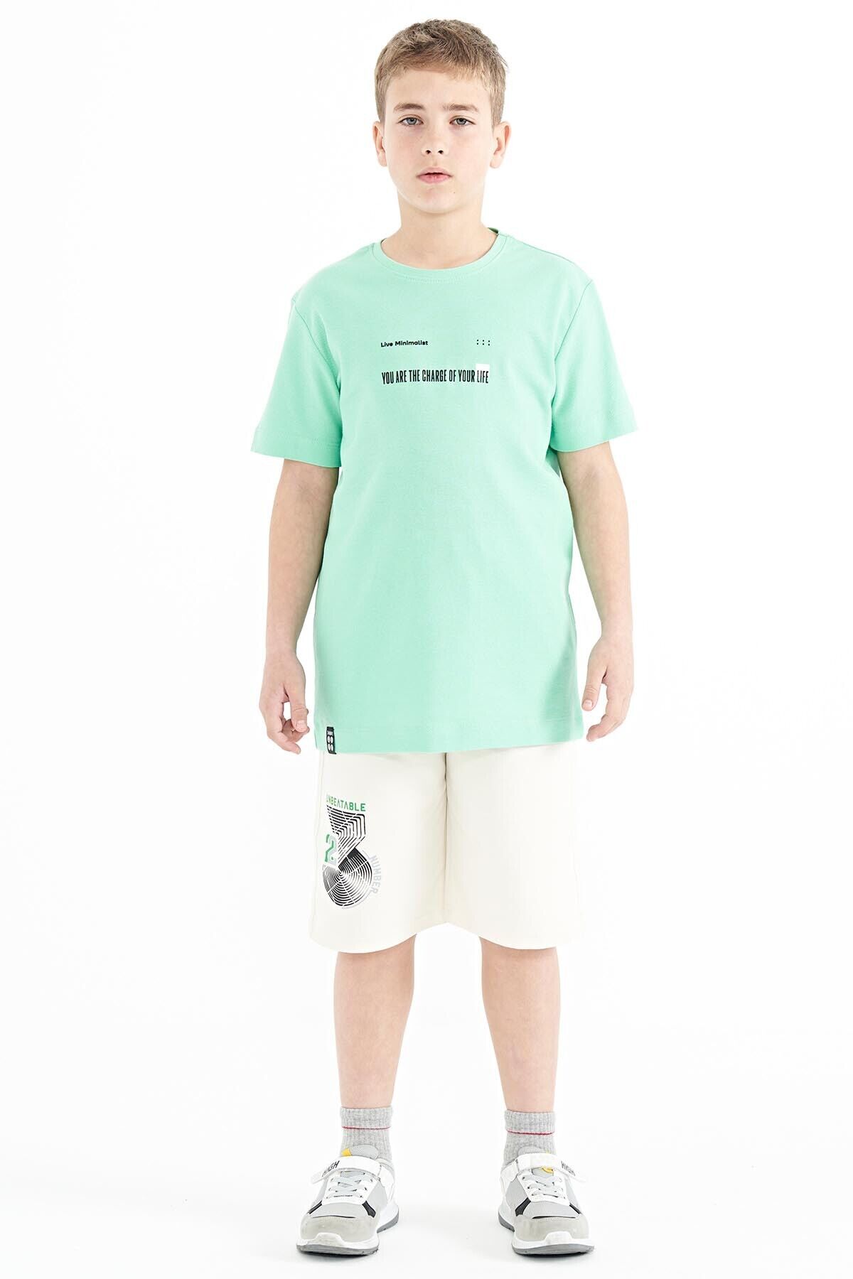 TommyLife Su Yeşili Baskı Detaylı O Yaka Standart Kalıp Erkek Çocuk T-Shirt - 11117
