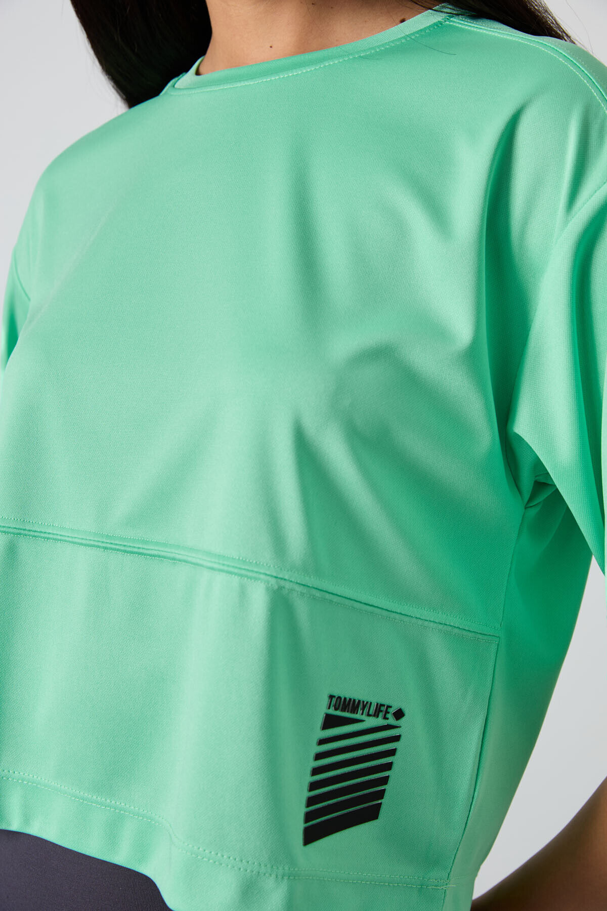 TommyLife Su Yeşili Nefes Alan Dokulu İnce Esnek Oversize Fit Performans Kadın T-Shirt - 97284