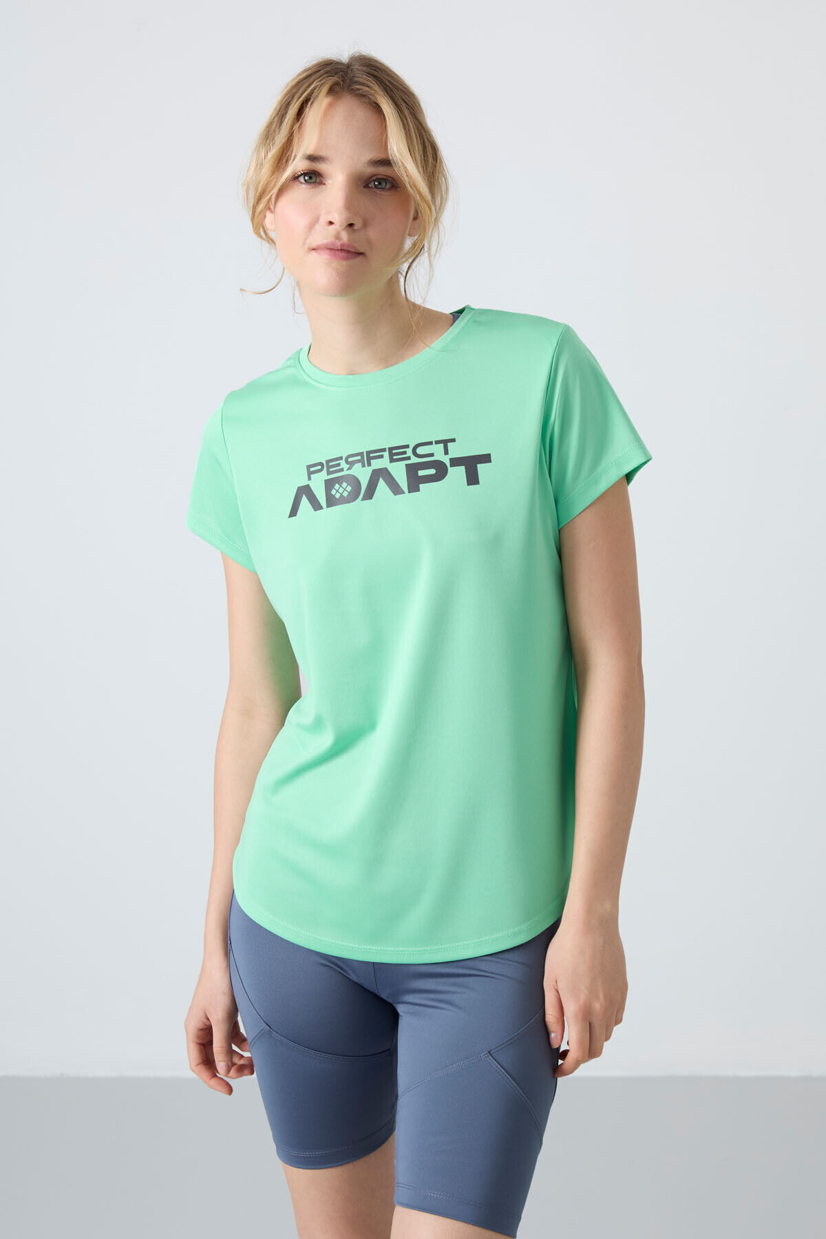 TommyLife Su Yeşili Nefes Alan Dokulu İnce Esnek Standart Fit Performans Kadın T-Shirt - 97283