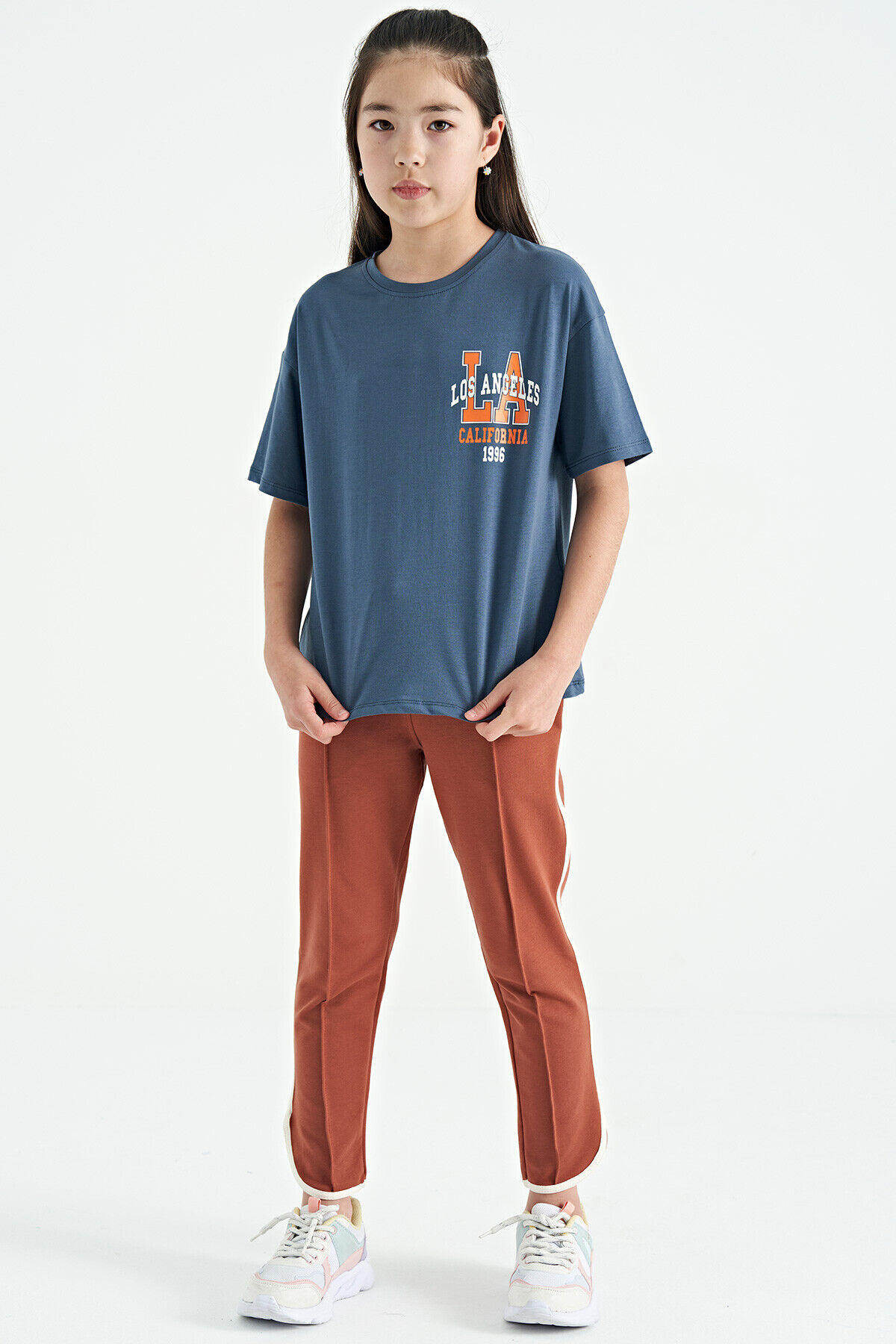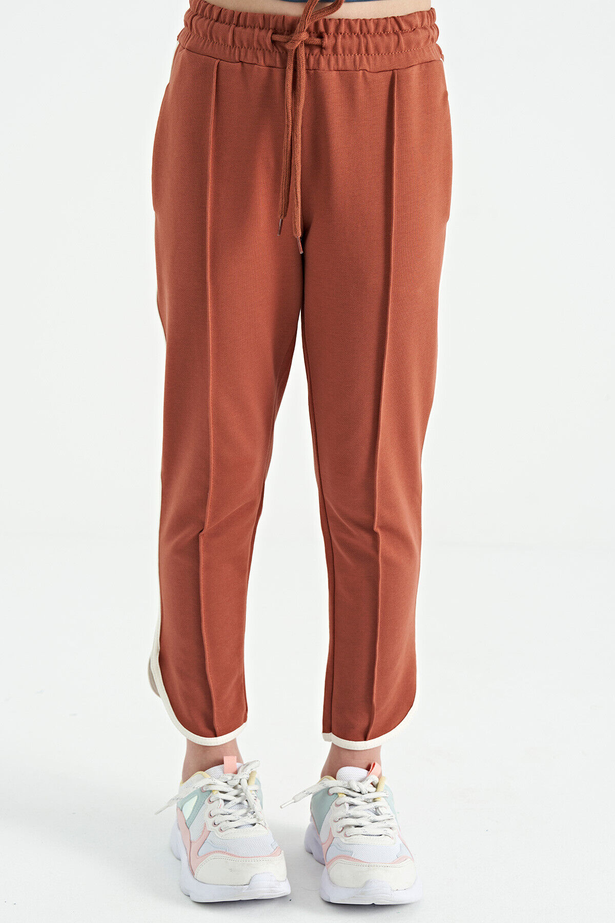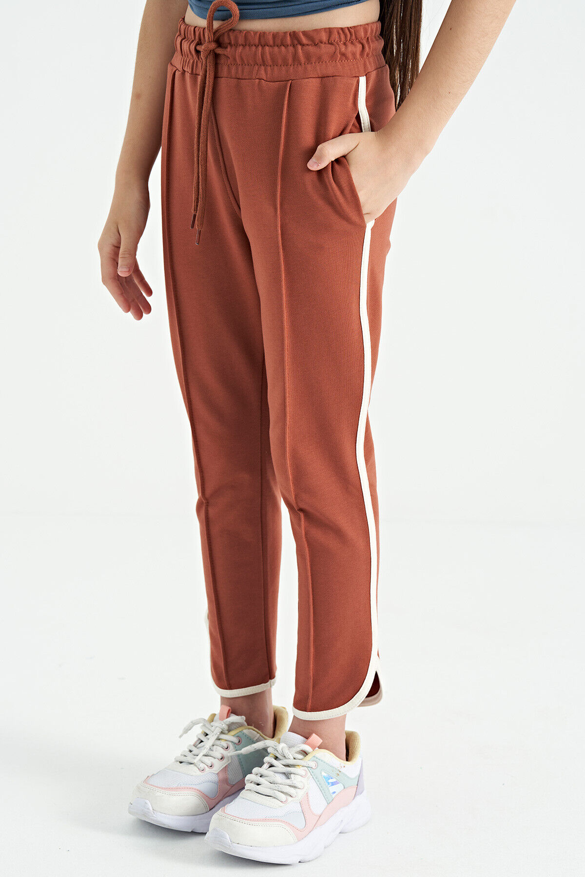 TommyLife Tarçın Biye Detaylı Bağcıklı Ön Nevürlü Geniş Paçalı Kız Çocuk Eşofman Altı - 75124
