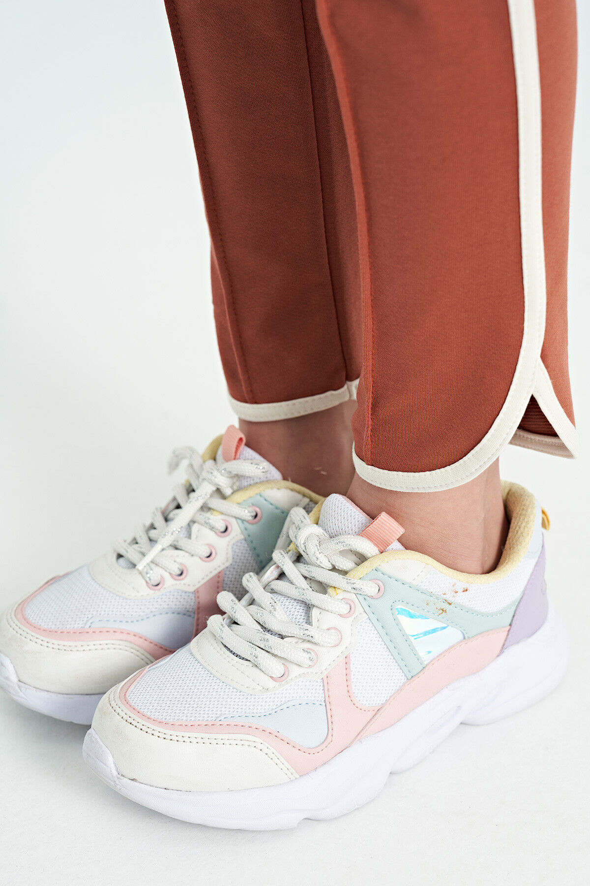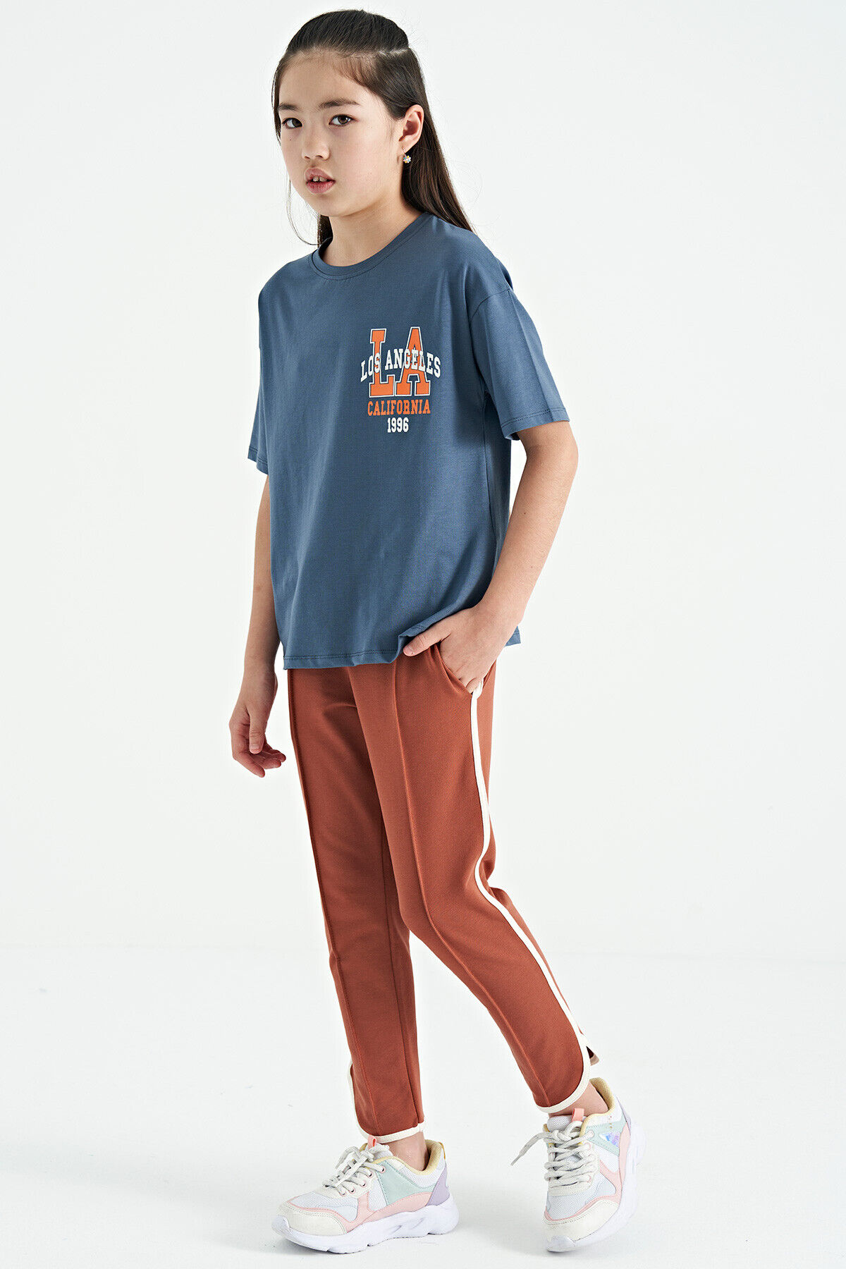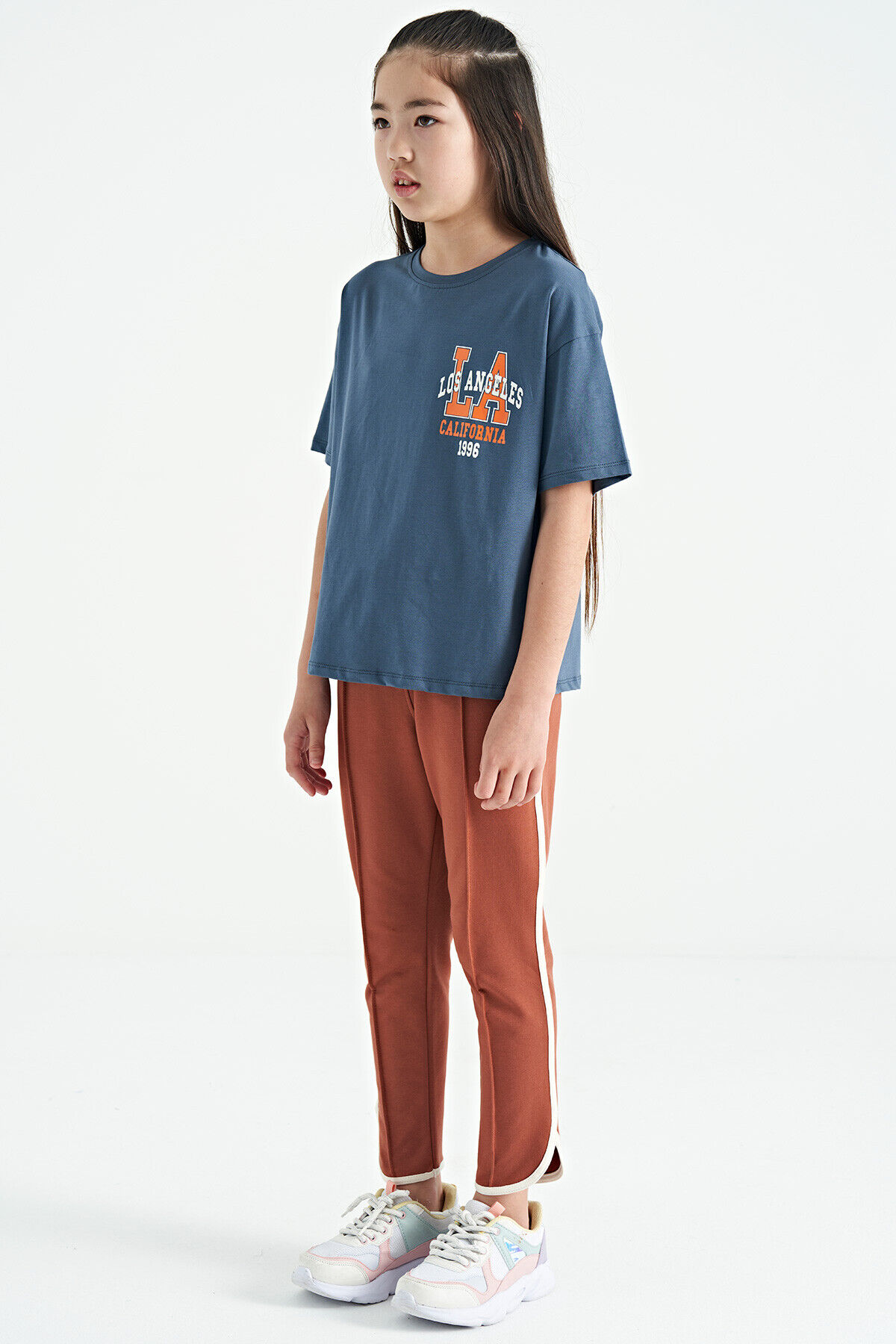 TommyLife Tarçın Biye Detaylı Bağcıklı Ön Nevürlü Geniş Paçalı Kız Çocuk Eşofman Altı - 75124