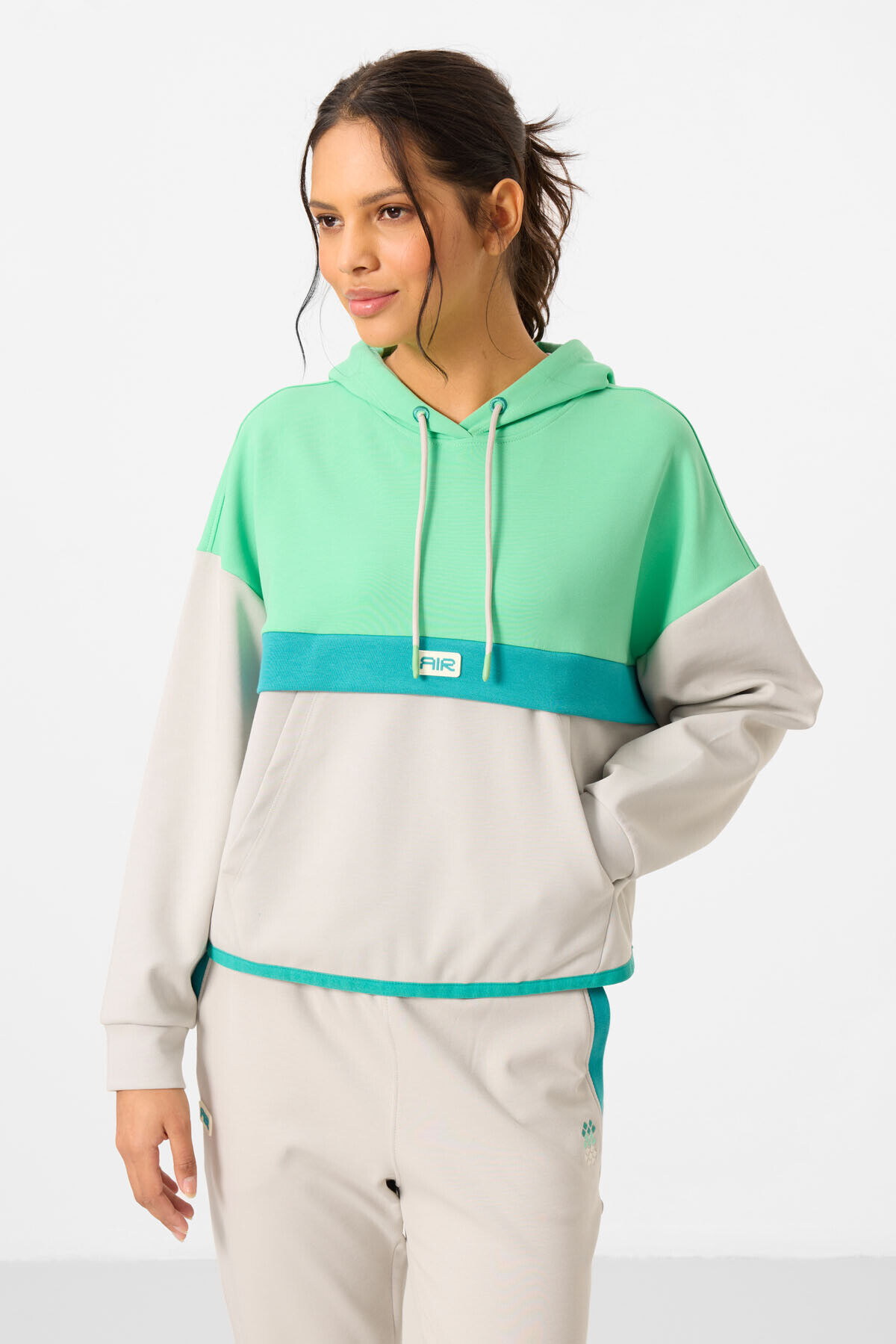 TommyLife Taş Kapüşonlu Pamuklu Renk Bloklu Kadın Eşofman Takım - 95327