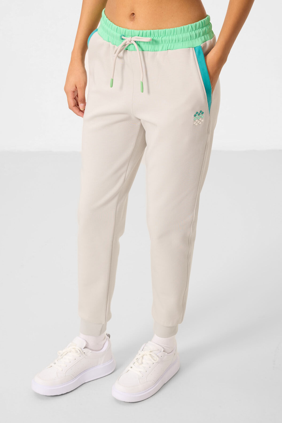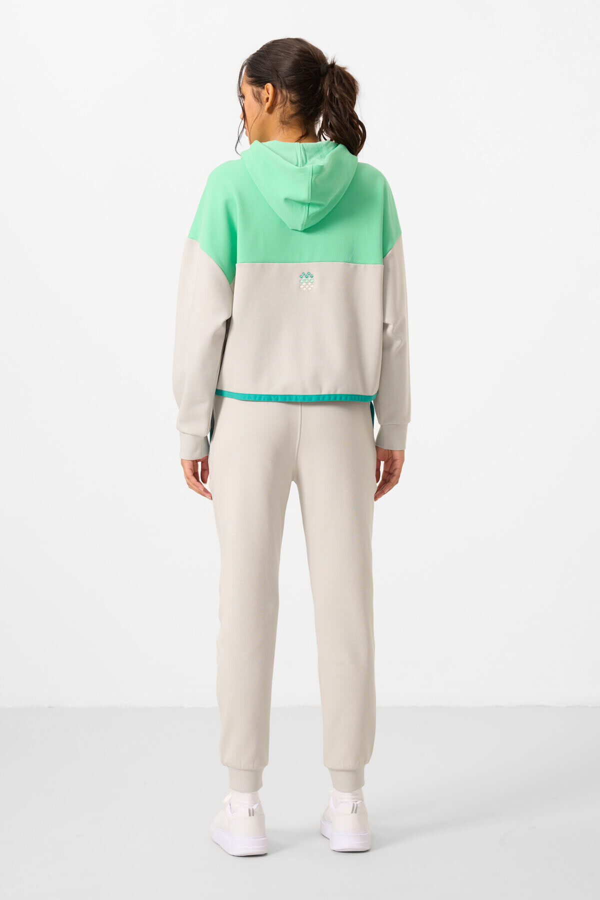 Taş Kapüşonlu Pamuklu Renk Bloklu Kadın Eşofman Takım - 95327