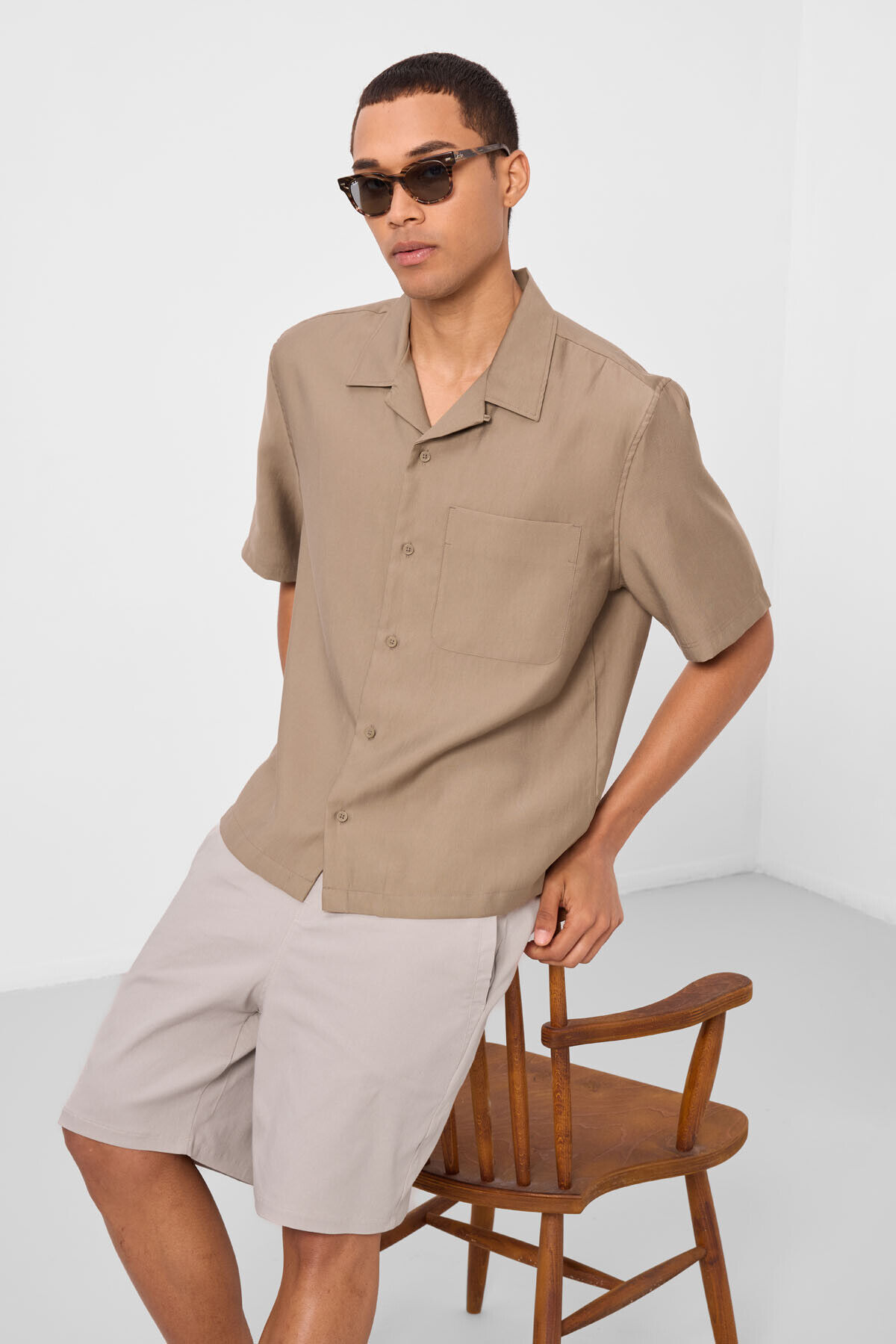 Taş Standart Fit Dokuma Hafif Esnek Chino Erkek Şort - 81292