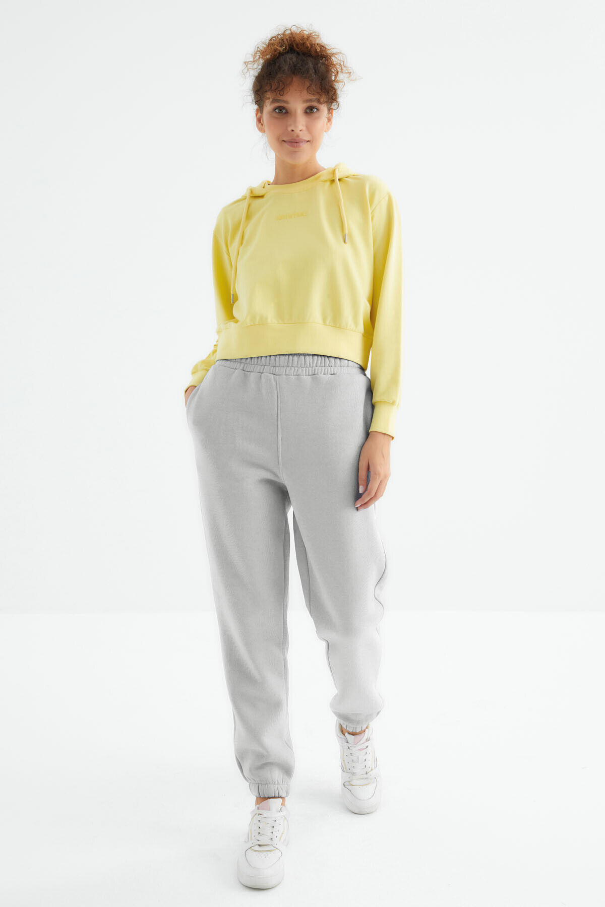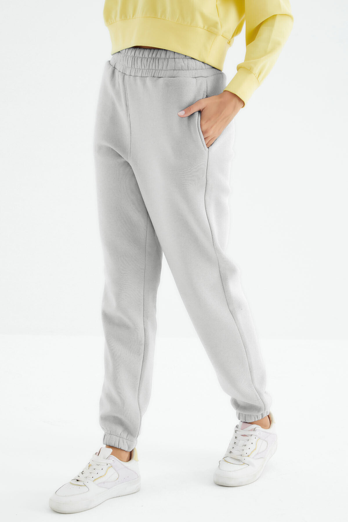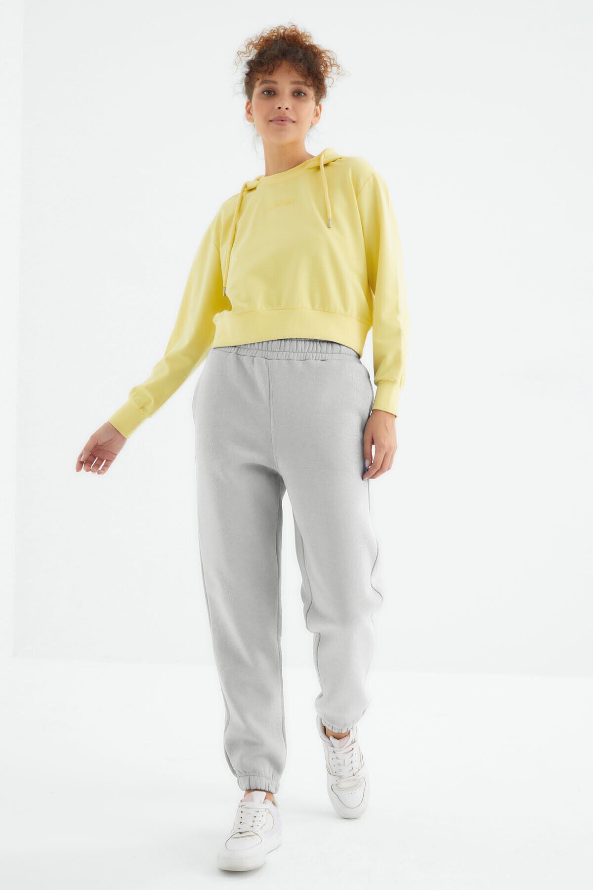 TommyLife Taş Yüksek Bel Şardonlu 3 İplik Pamuklu Basic Kadın Eşofman Altı - 94624