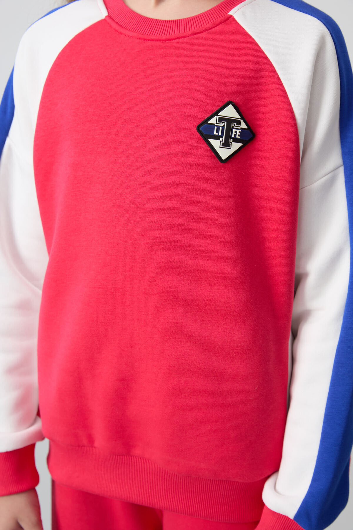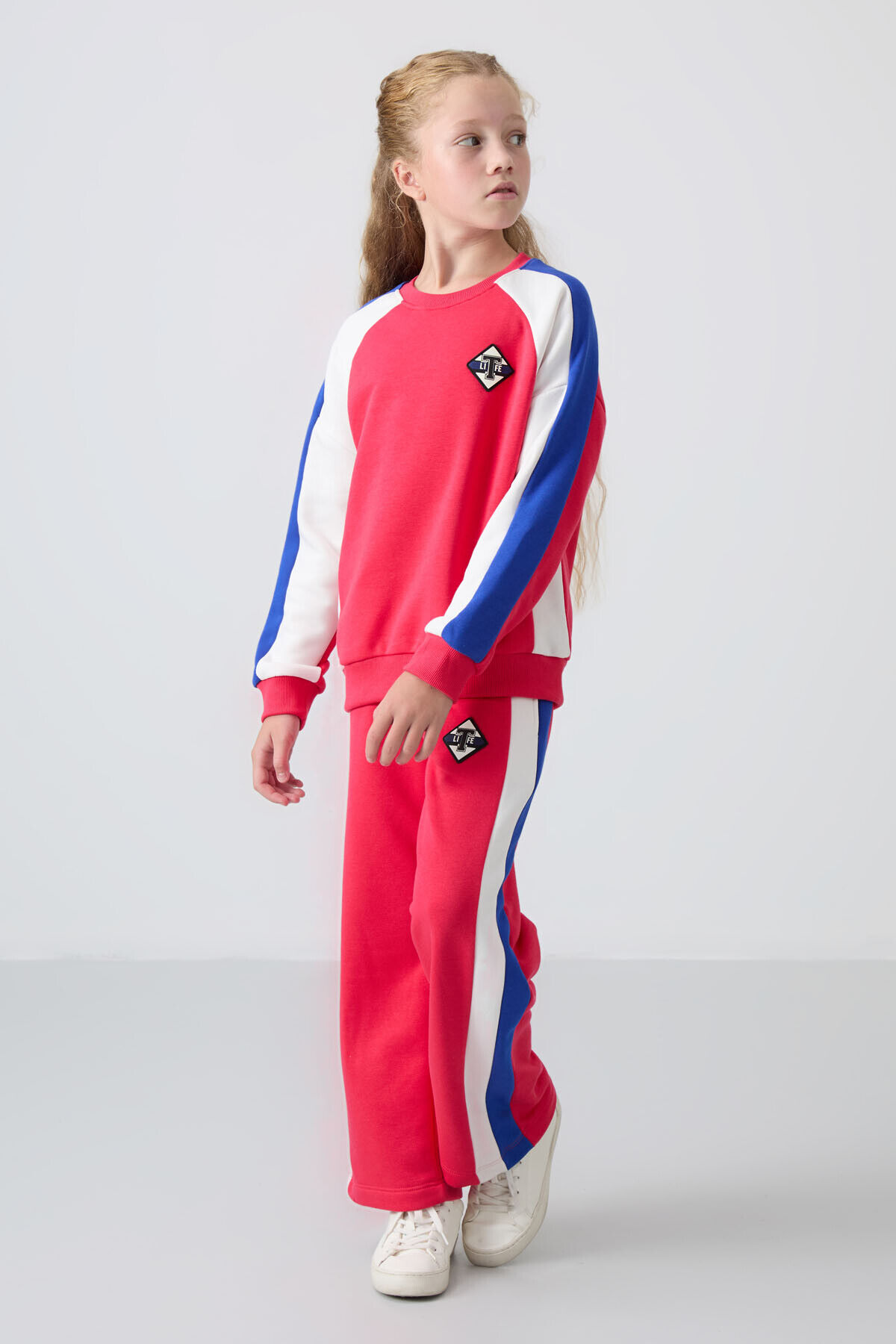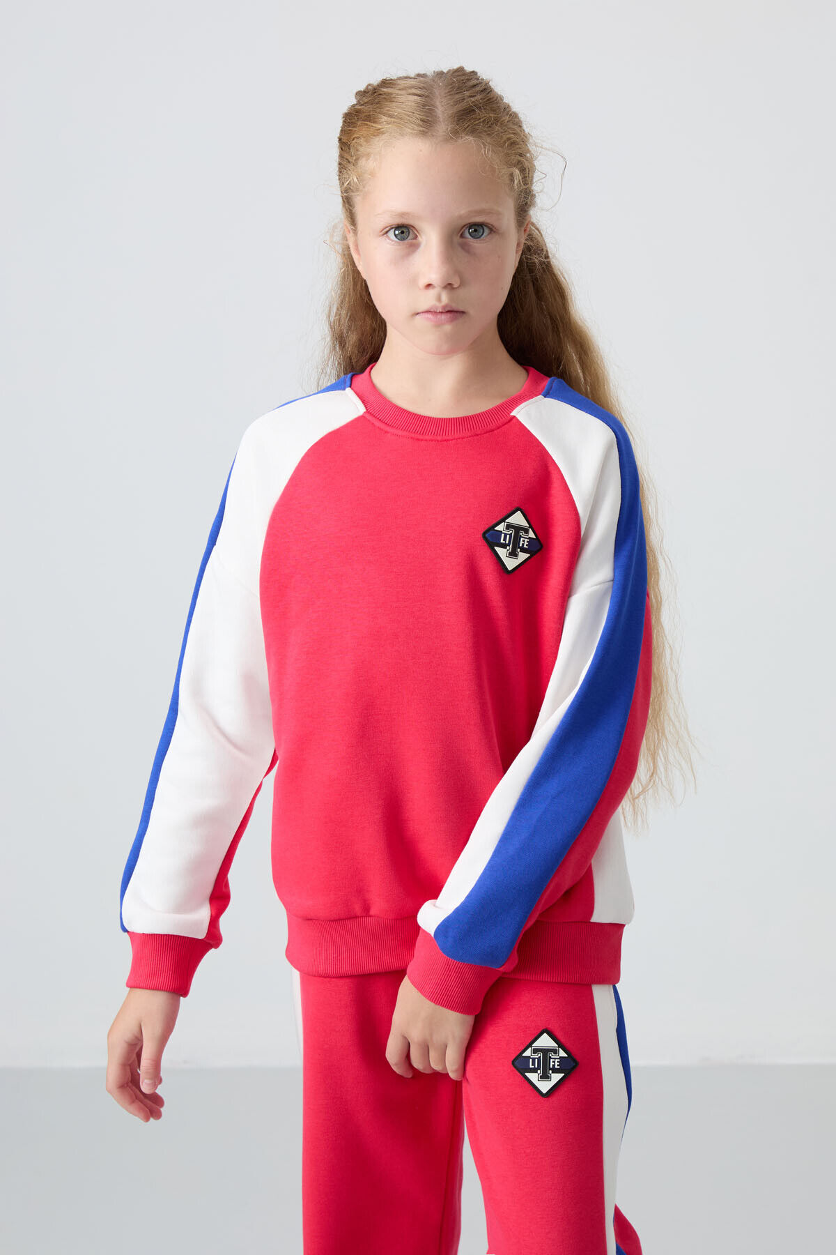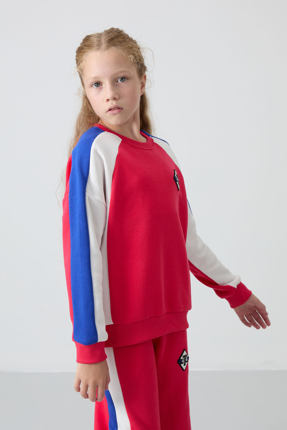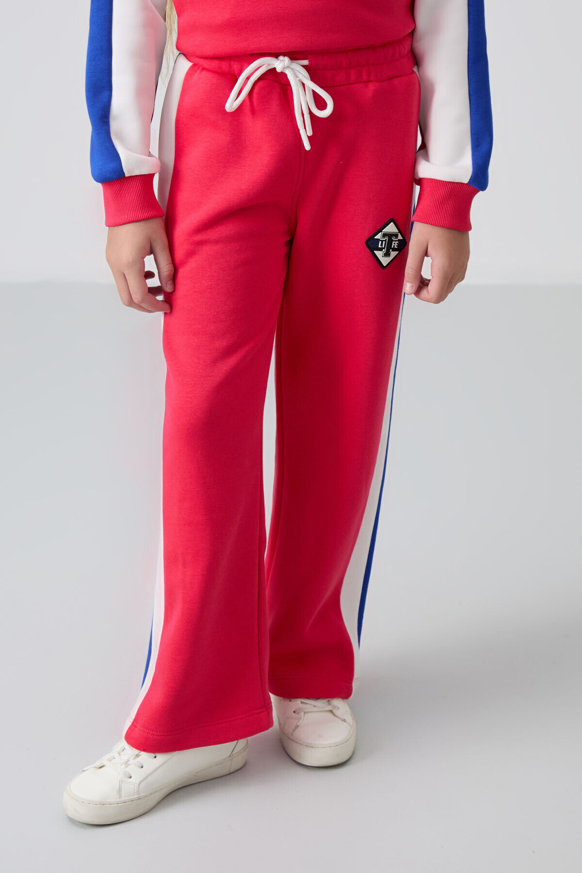 TommyLife Viva Kırmızı O Yaka Geniş Paça Standart Fit Baskılı Kız Çocuk Eşofman Takım - 75165