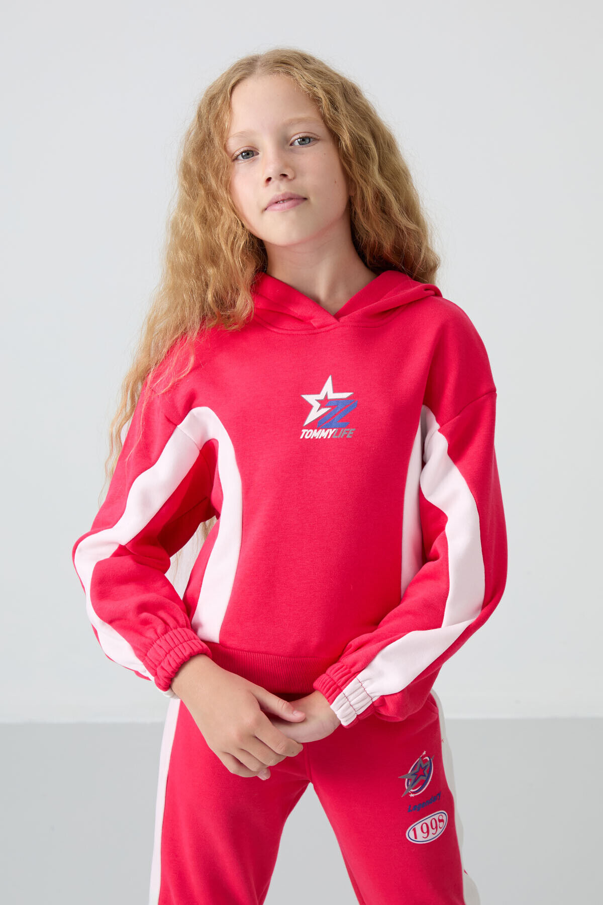 TommyLife Viva Kırmızı Pamuklu İçi Tüylü Yumuşak Dokulu Standart Fit Baskılı Kız Çocuk Eşofman Takım - 75166