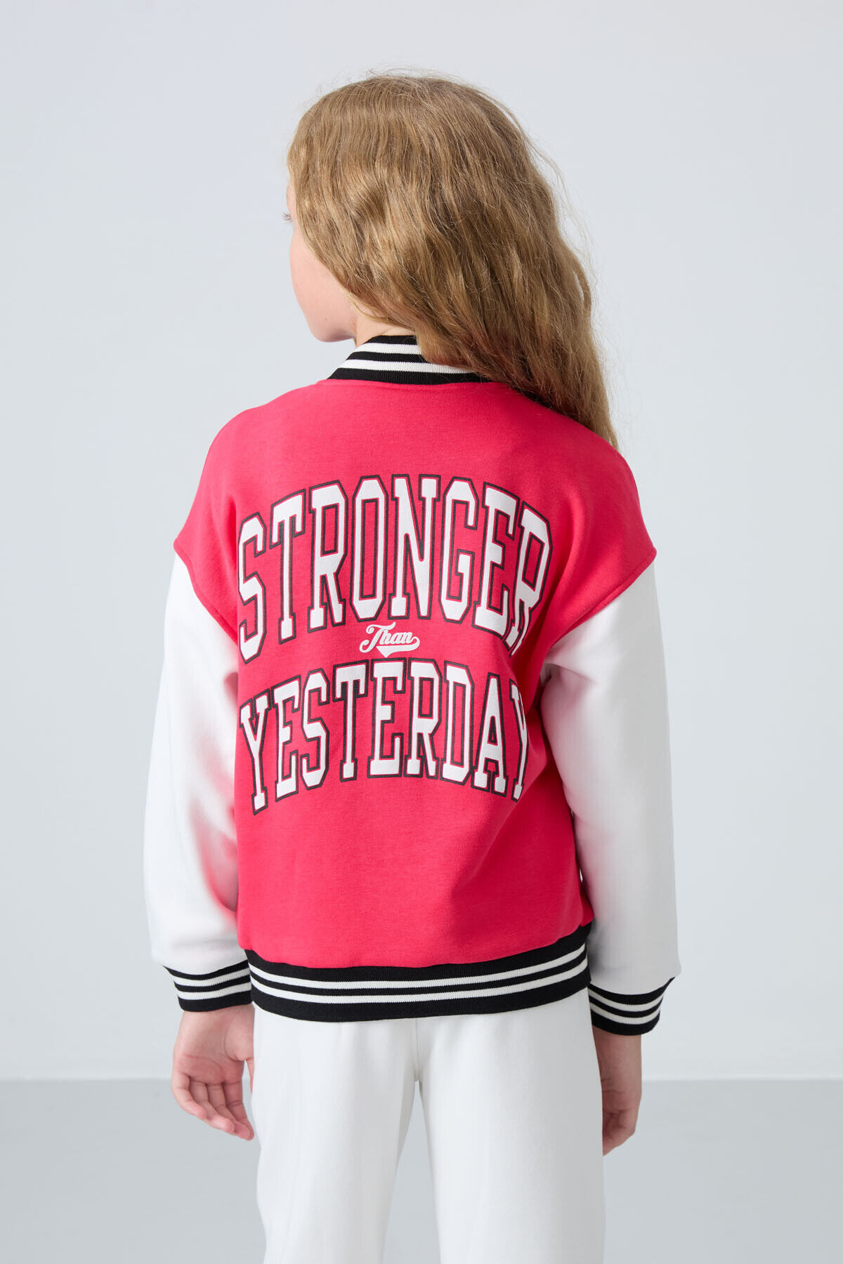 Viva Kırmızı Pamuklu İçi Tüylü Yumuşak Dokulu Standart Fit Nakışlı Kız Çocuk Kolej Ceket - 75163