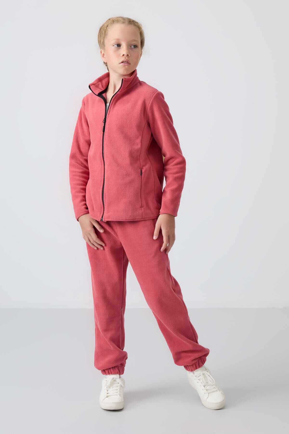 Yaban Gülü Kalın Yumuşak Dokulu Standart Fit Nakışlı Polar Kız Çocuk Eşofman Alt - 75155