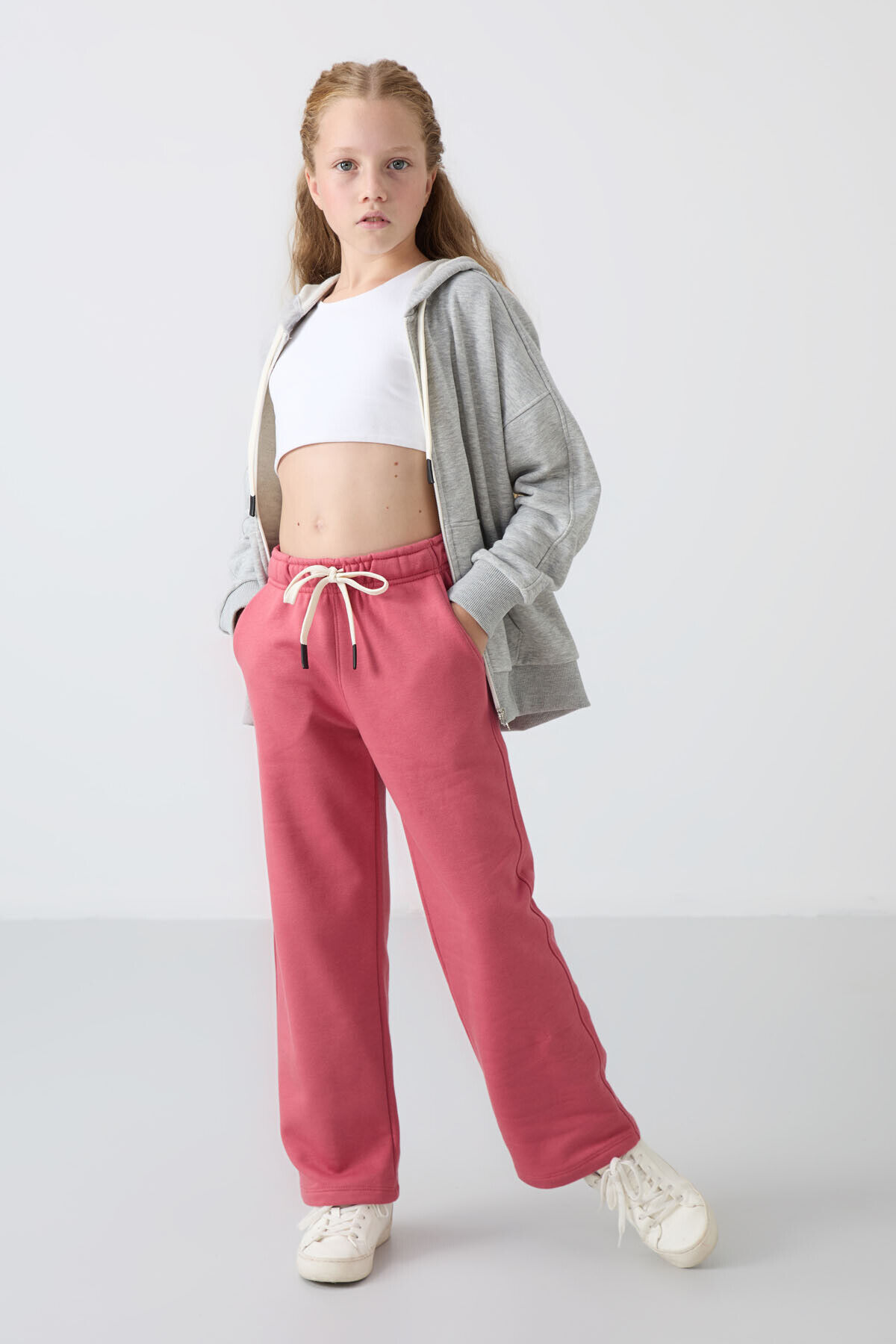 TommyLife Yaban Gülü Pamuklu İçi Tüylü Yumuşak Dokulu Standart Fit Nakışlı Kız Çocuk Eşofman Alt - 75146
