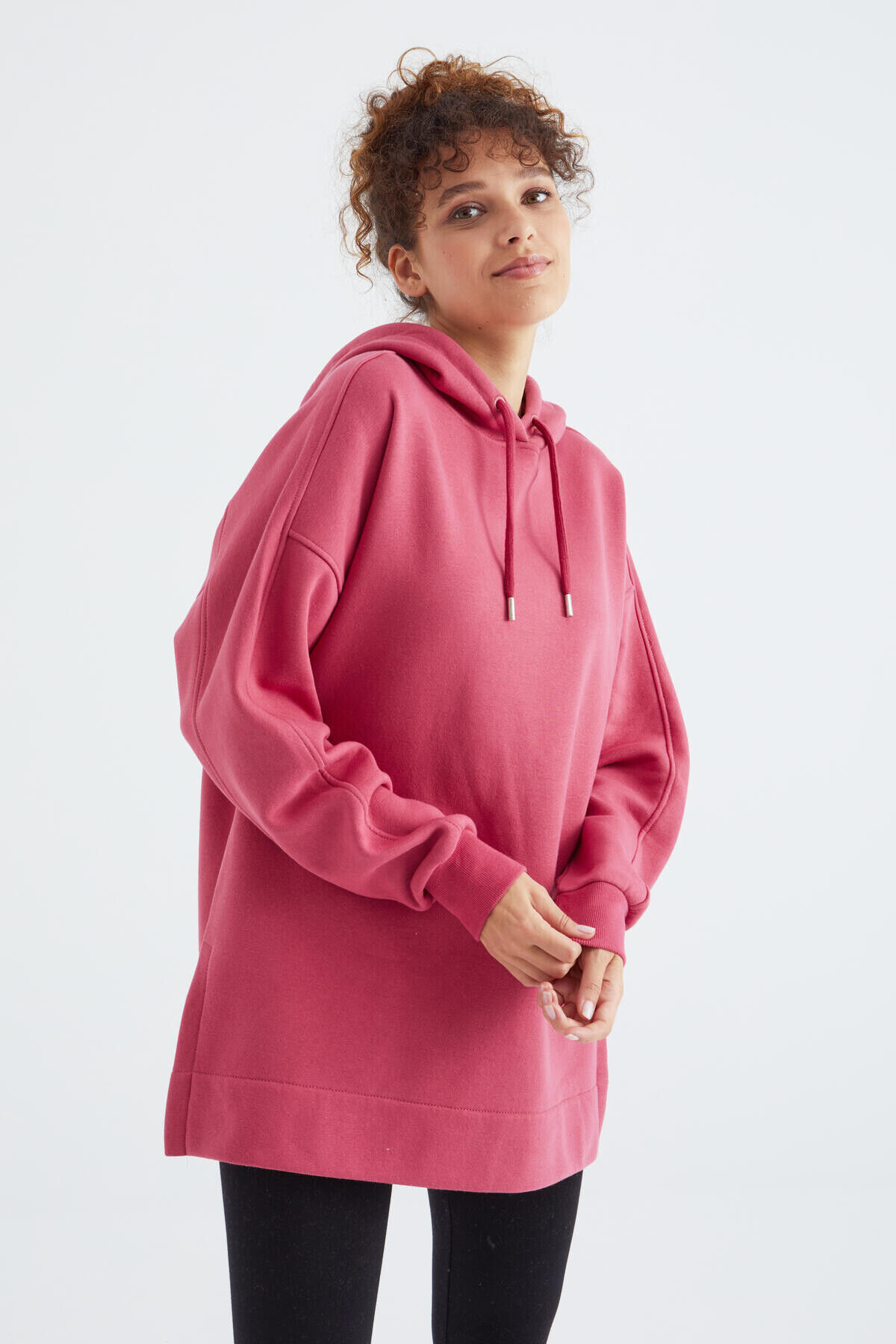 Yaban Gülü Reglan Kol Basic Kapüşonlu Oversize Sweatshirt Sweatshirt Tunik - 97242