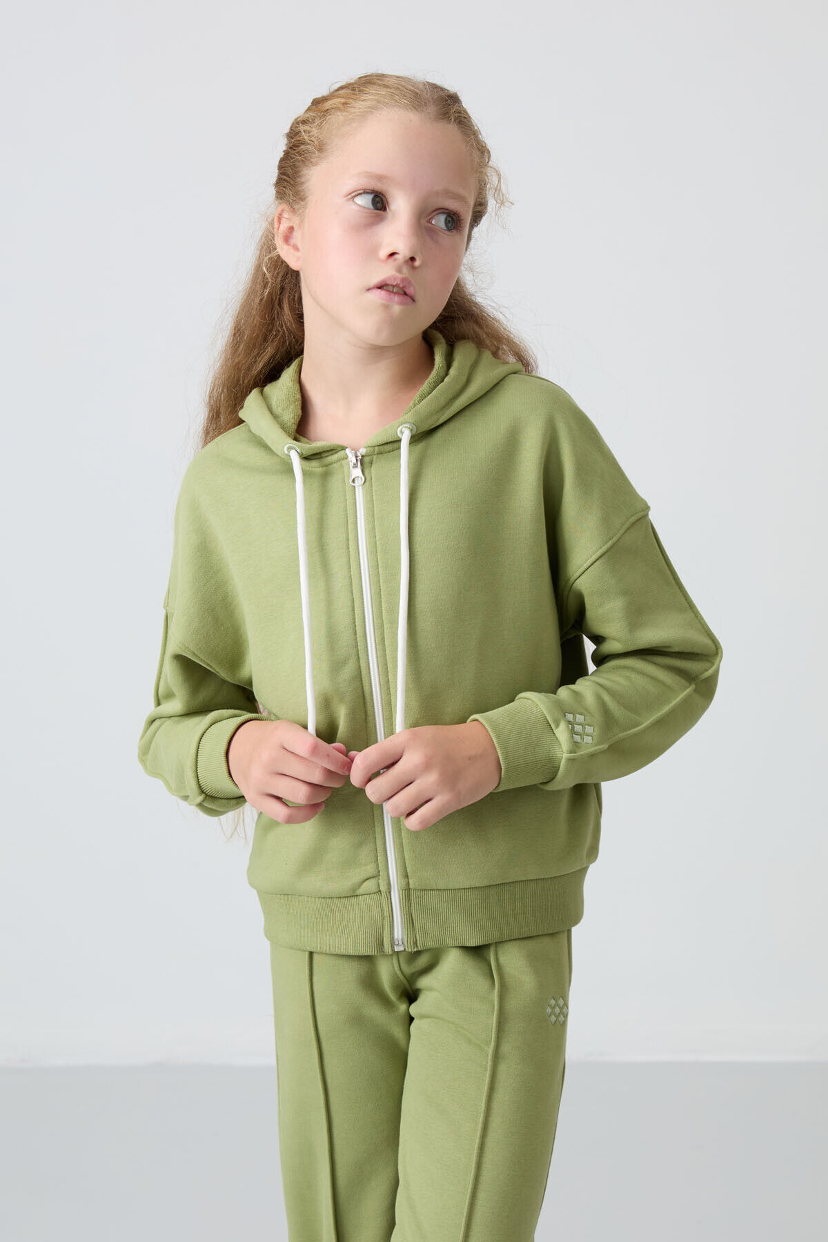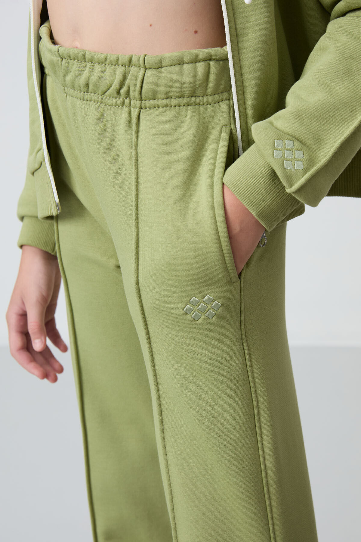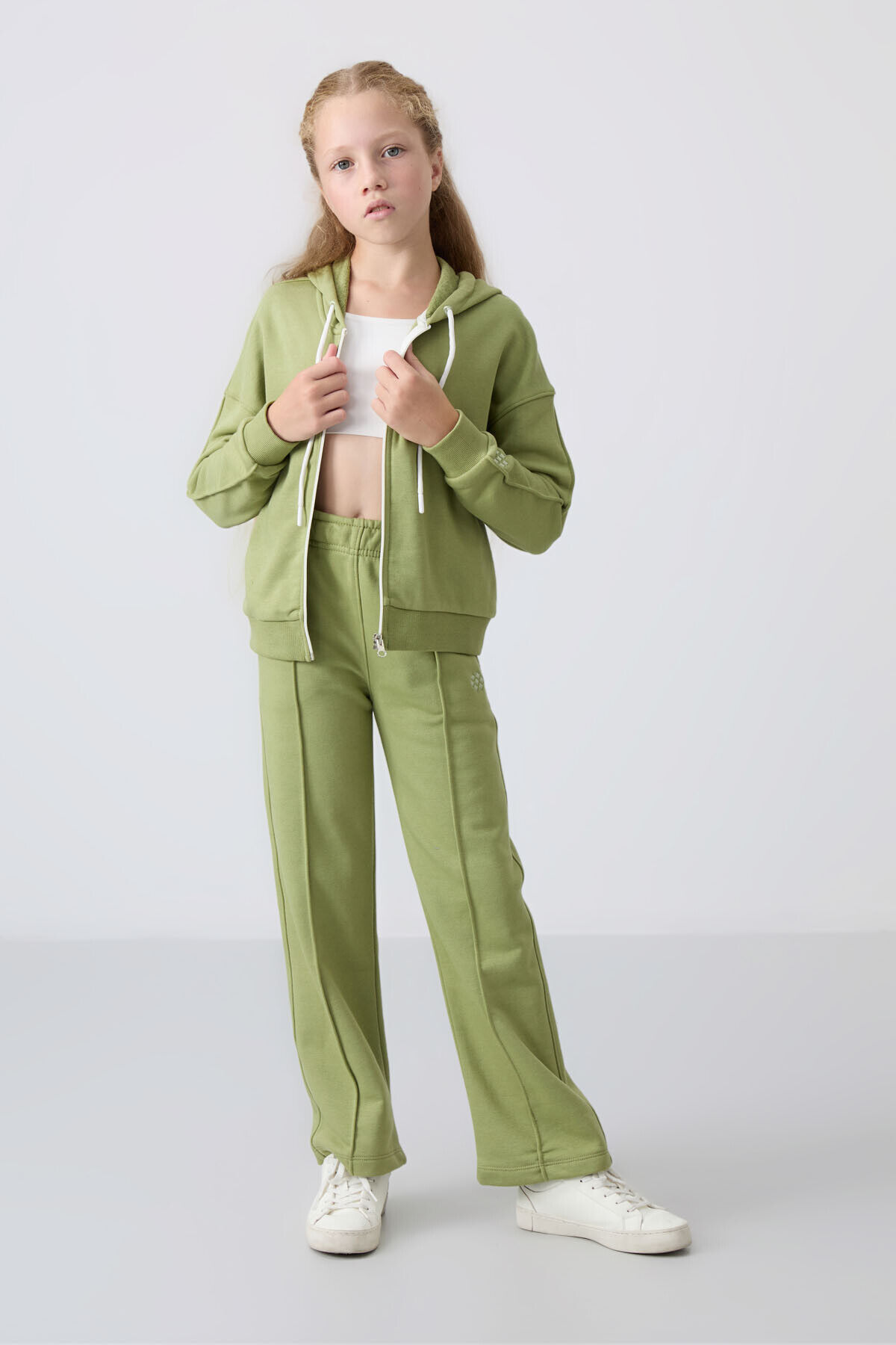TommyLife Yağ Yeşil Pamuklu İçi Tüylü Yumuşak Dokulu Standart Fit Nakışlı Kız Çocuk Eşofman Takım - 75161