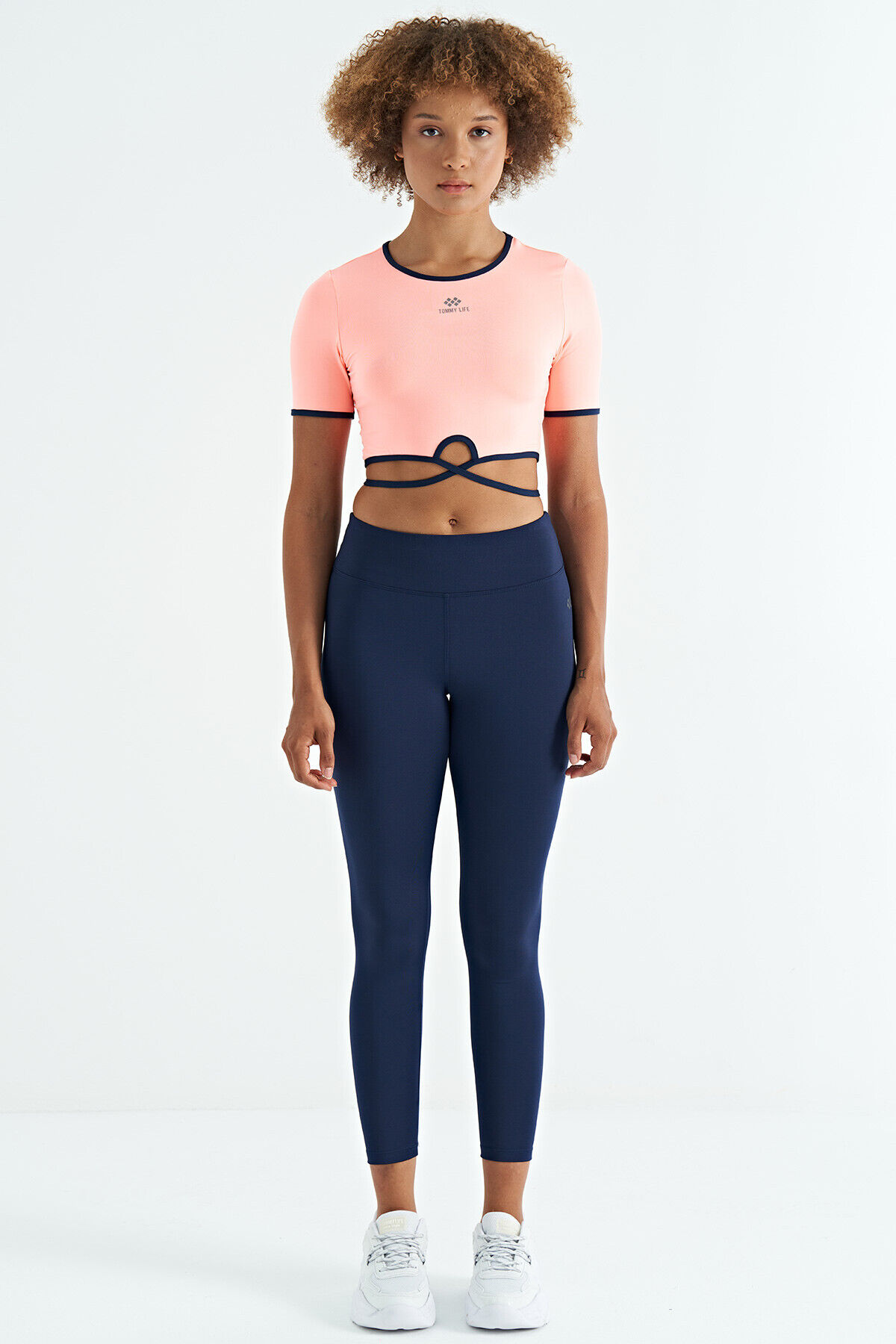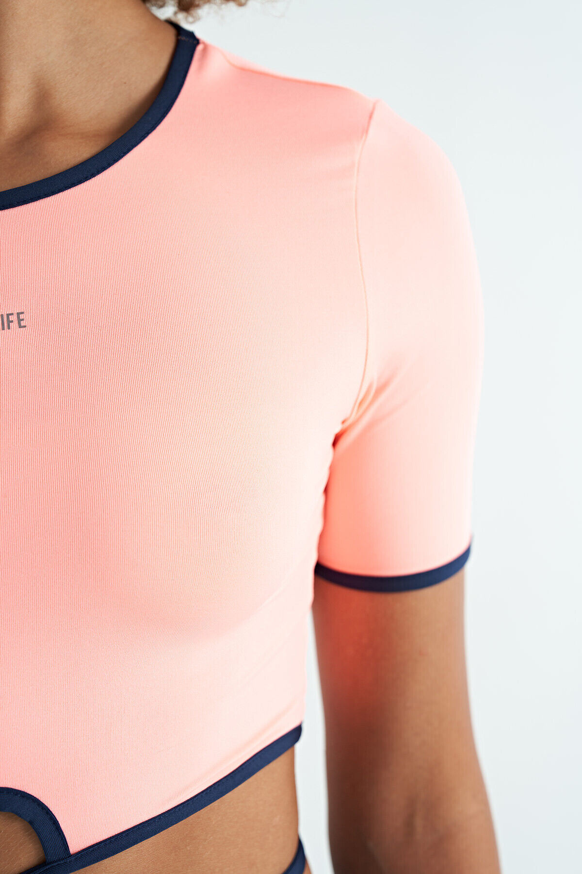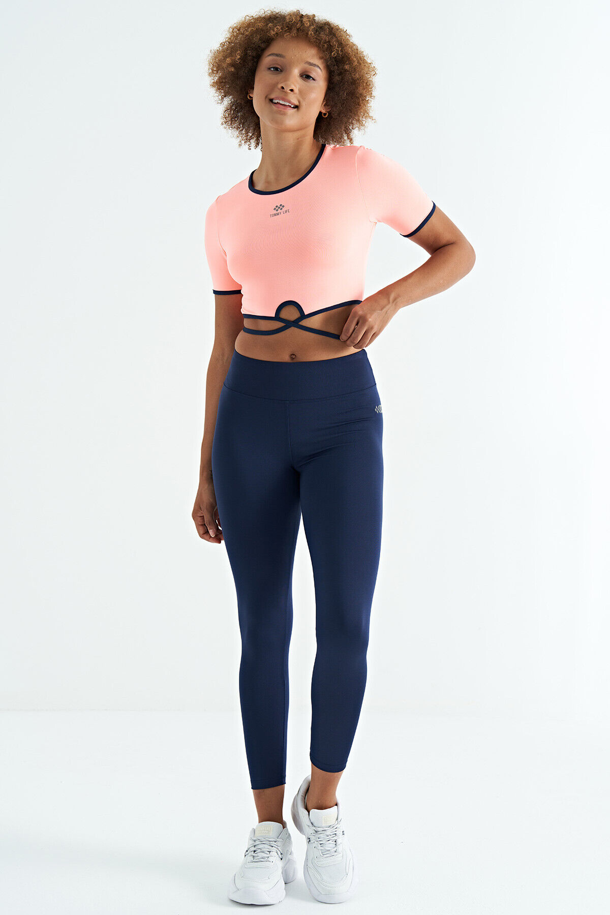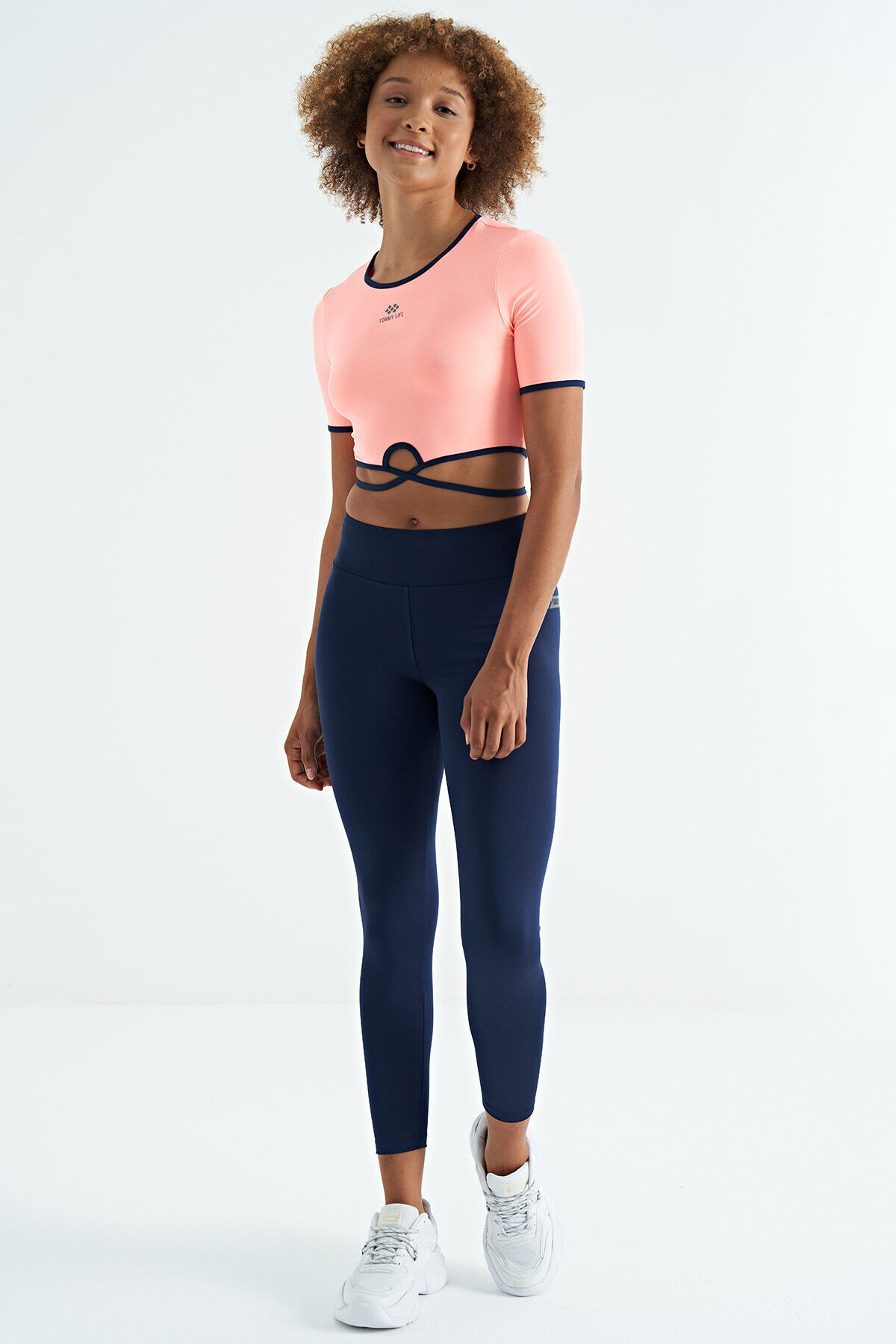 Yavruagzı Bel Bağlama Detaylı O Yaka Standart Kalıp Dalgıç Kumaş Kadın Crop T-Shirt - 97266