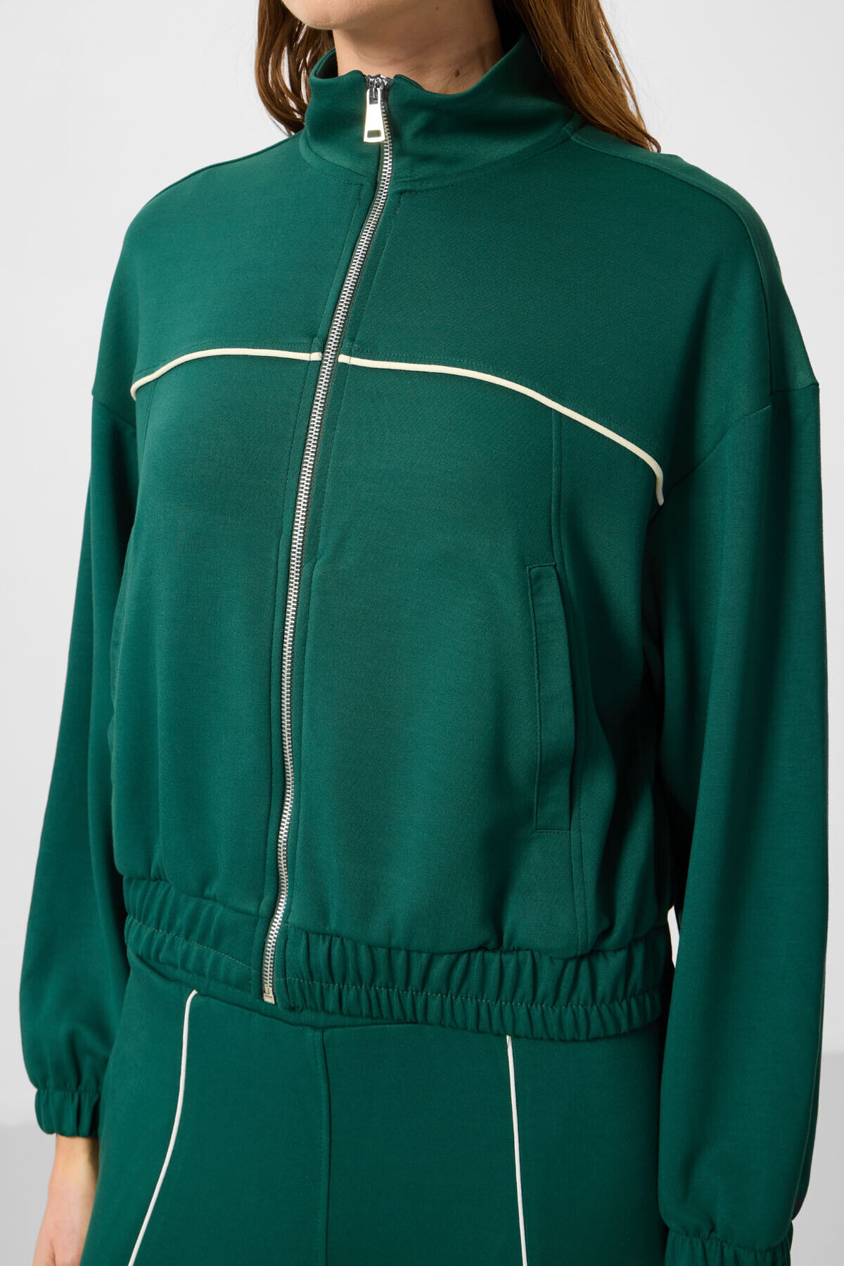 TommyLife Yeşil Yumuşak Dokulu Dik Yaka Oversize Lastikli Kadın Eşofman Takım - 95349