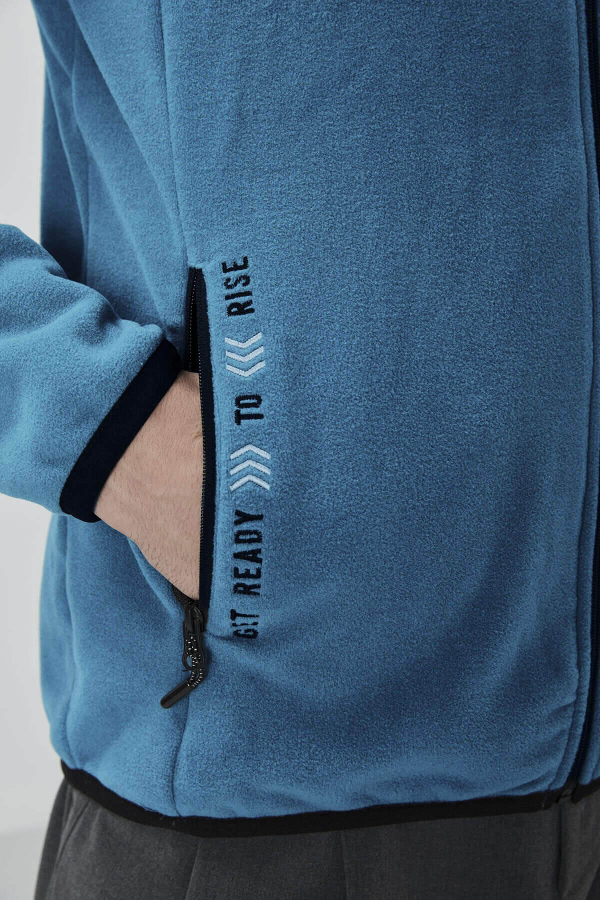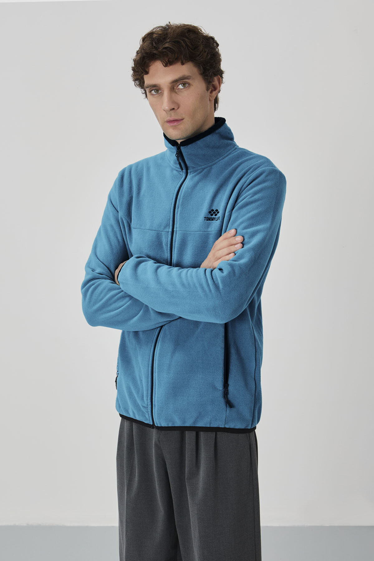 TommyLife Zümrüt Yazı Nakışlı Dik Yaka Fermuarlı Standart Kalıp Erkek Sweatshirt Polar - 87992