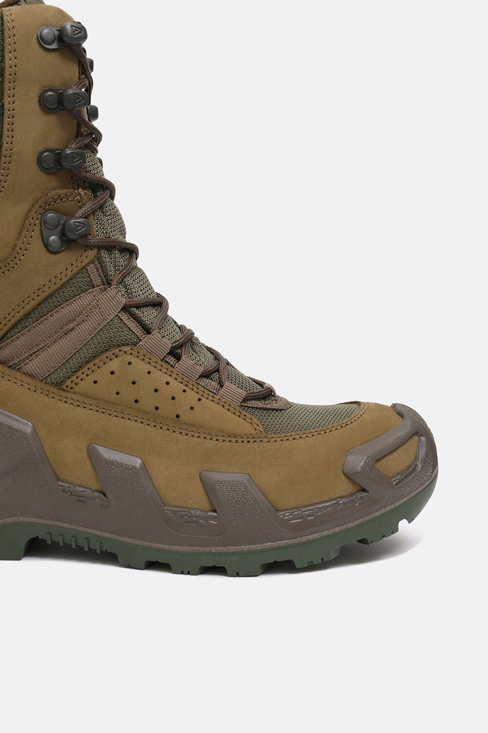Dış Kısım: Su geçirmez, nefes alabilir nubuk deri ; CORDURA ® (Poliamid 6.6) hava geçirgen, dayanıklı örgü kumaş kullanılmıştır.