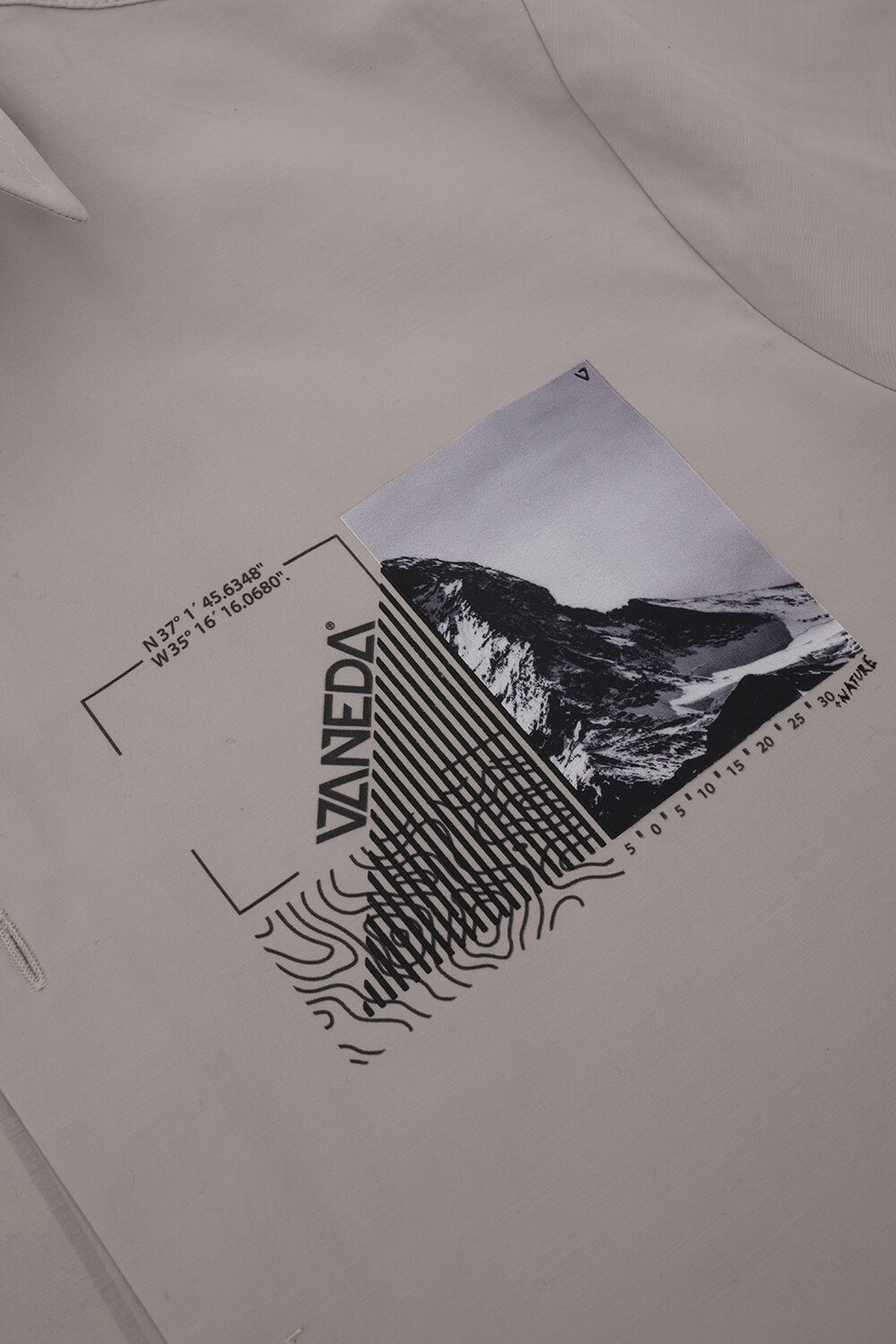 VANEDA RELAXED FIT SIRT DESEN BASKILI COTON ERKEK GOMLEK GRİ