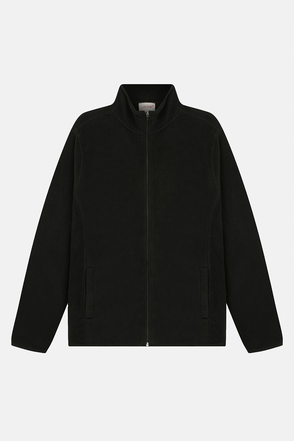 Karyoka dikiş detaylı, siyah polar kumaştan tam fermuarlı vücut ısıtıcısı.