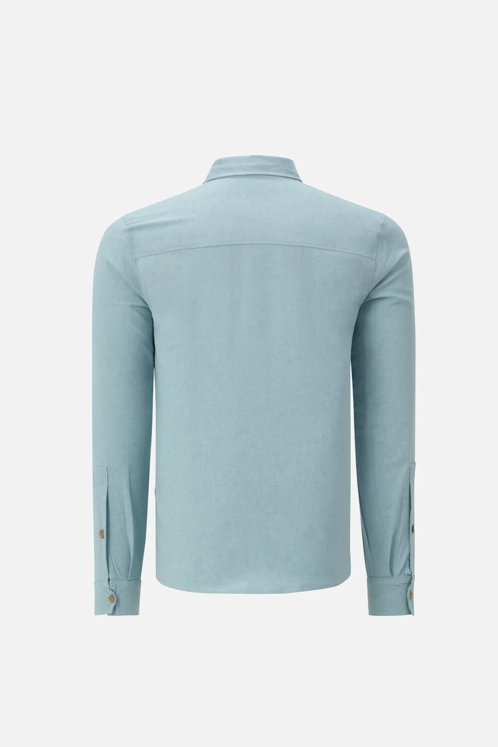 Bu açık mavi keten gömlek, kaliteli malzemesi ve özenli detaylarıyla dikkat çeker. İster günlük hayatta, ister özel davetlerde kullanabileceğiniz şık ve rahat bir seçenektir.