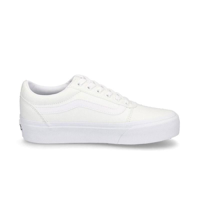 Vans WM Ward Platform Kadın Günlük Ayakkabı, klasik Vans siluetini yükseltilmiş taban yapısıyla modern bir görünüme taşıyor. Platform tabanı ile hem tarzınıza yükseklik katarken hem de konforlu bir yürüyüş sunar. Beyaz rengiyle sade, zarif ve zamansız bir görünüm sunan bu model, günlük kombinlerinizin vazgeçilmez parçası olacak. İkonik yan şerit detayı ve dayanıklı kanvas yapısıyla stil ve fonksiyonelliği bir arada sunar.