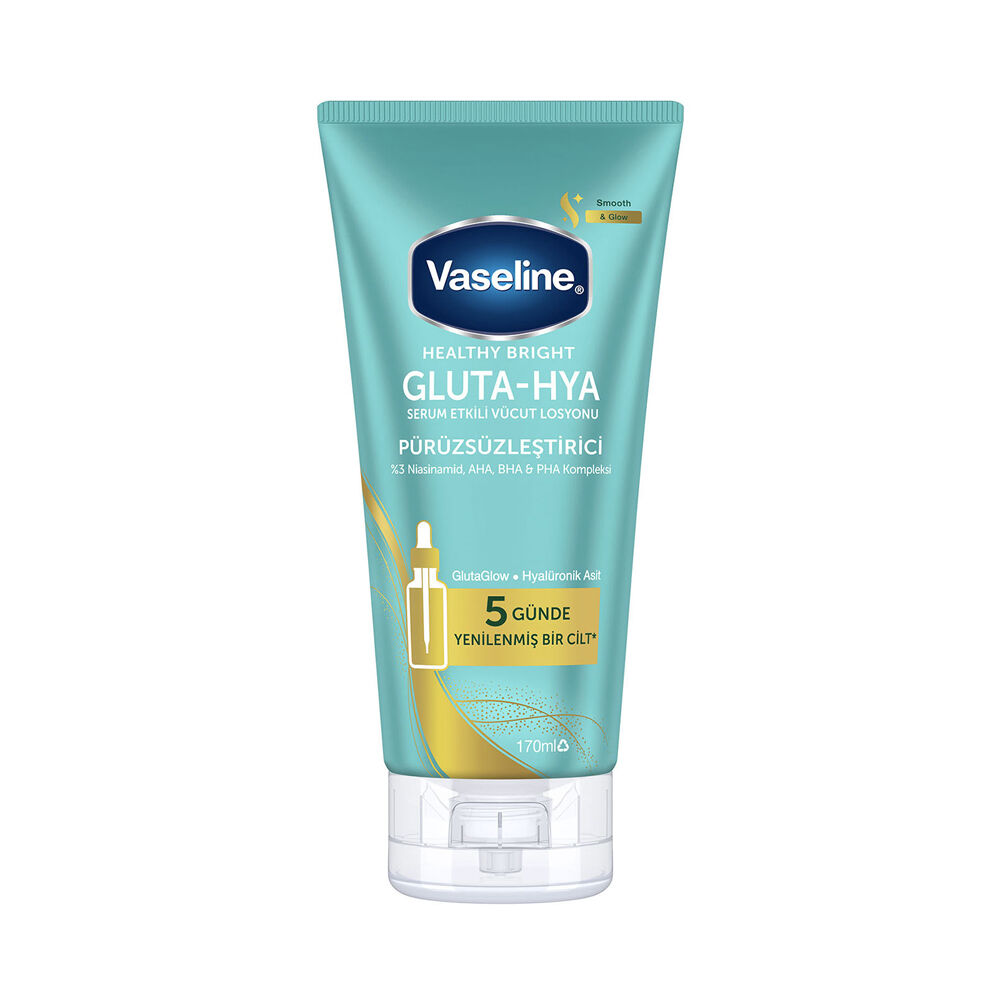 Vaseline Gluta - Hya Pürüzsüzleştirici Losyon, cildi nemlendirirken aynı zamanda pürüzsüz bir görünüm kazandırır. Yoğun bakımı sayesinde cildinizdeki kuruluğu hafifletir ve sağlıklı bir parıltı sunar.