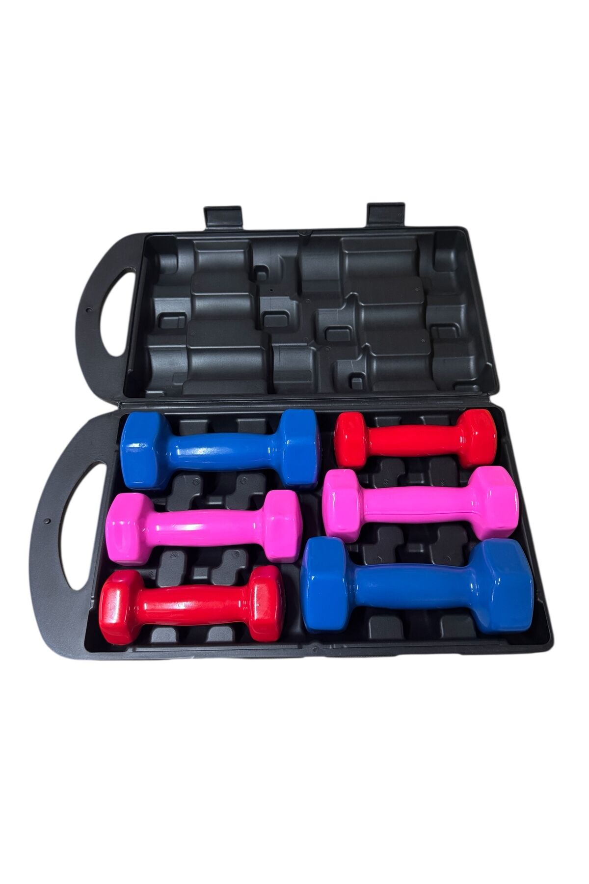 VAYNE 10 Kg Vinly Kaplı Dipping Dumbbell Set Kadınlar İçin Çantalı Dambıl Set 1 kg, 1,5 Kg, 2,5 kg