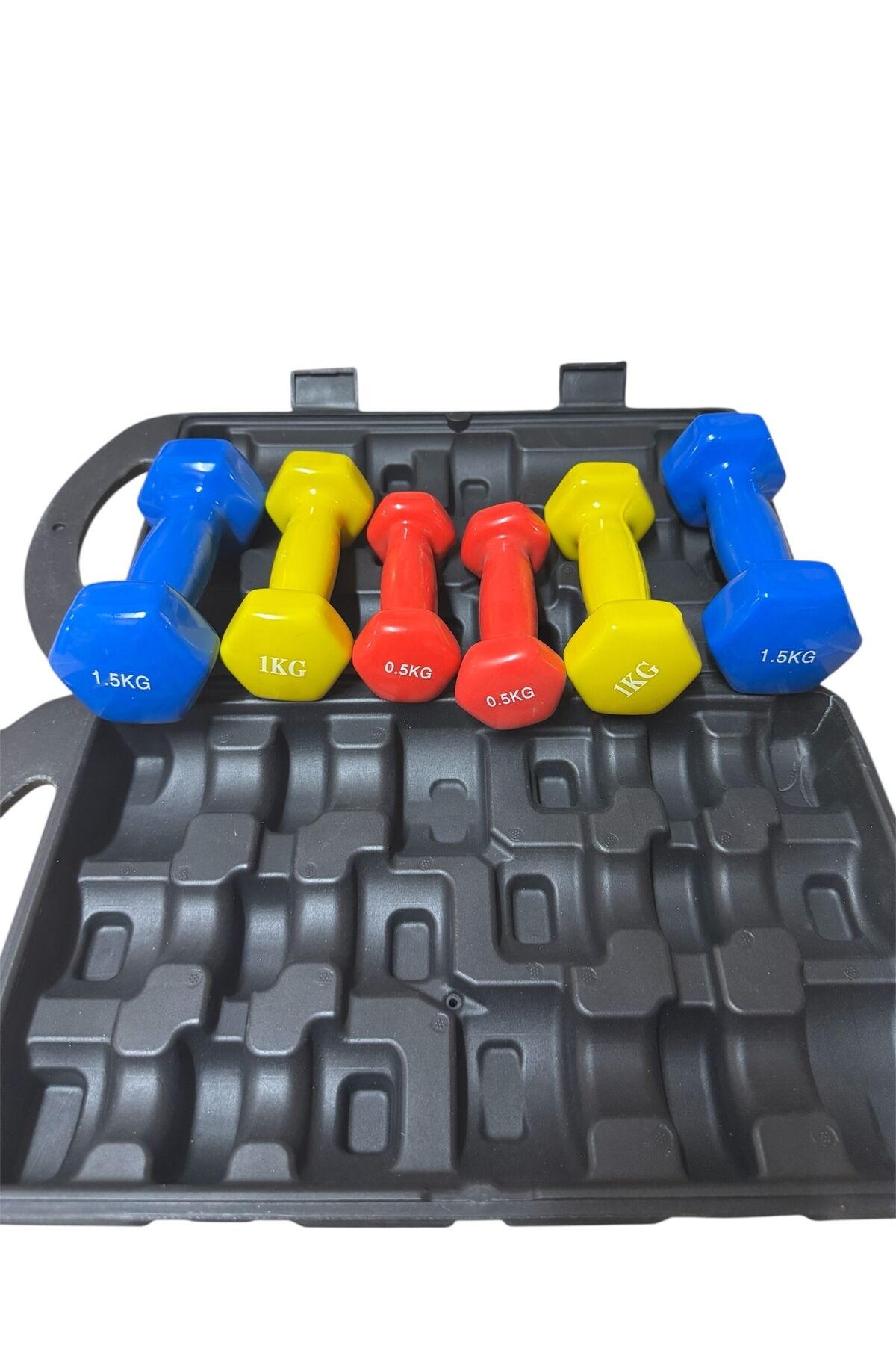 6 Kg Vinly Kaplı Dipping Dumbbell Set Kadınlar İçin Çantalı Dambıl Set 0,5 kg, 1 Kg, 1,5 kg