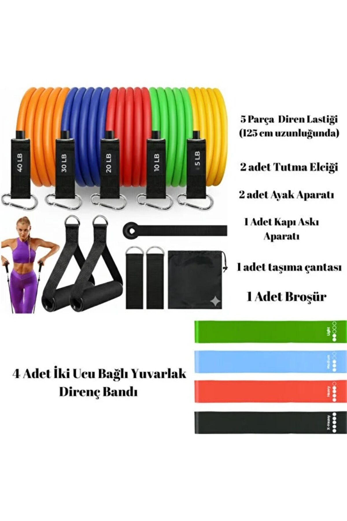 VAYNE Çantalı Lateks 16 Parça Direnç Lastiği Seti Toplam 105 LBS 47.5 Kg Direnç