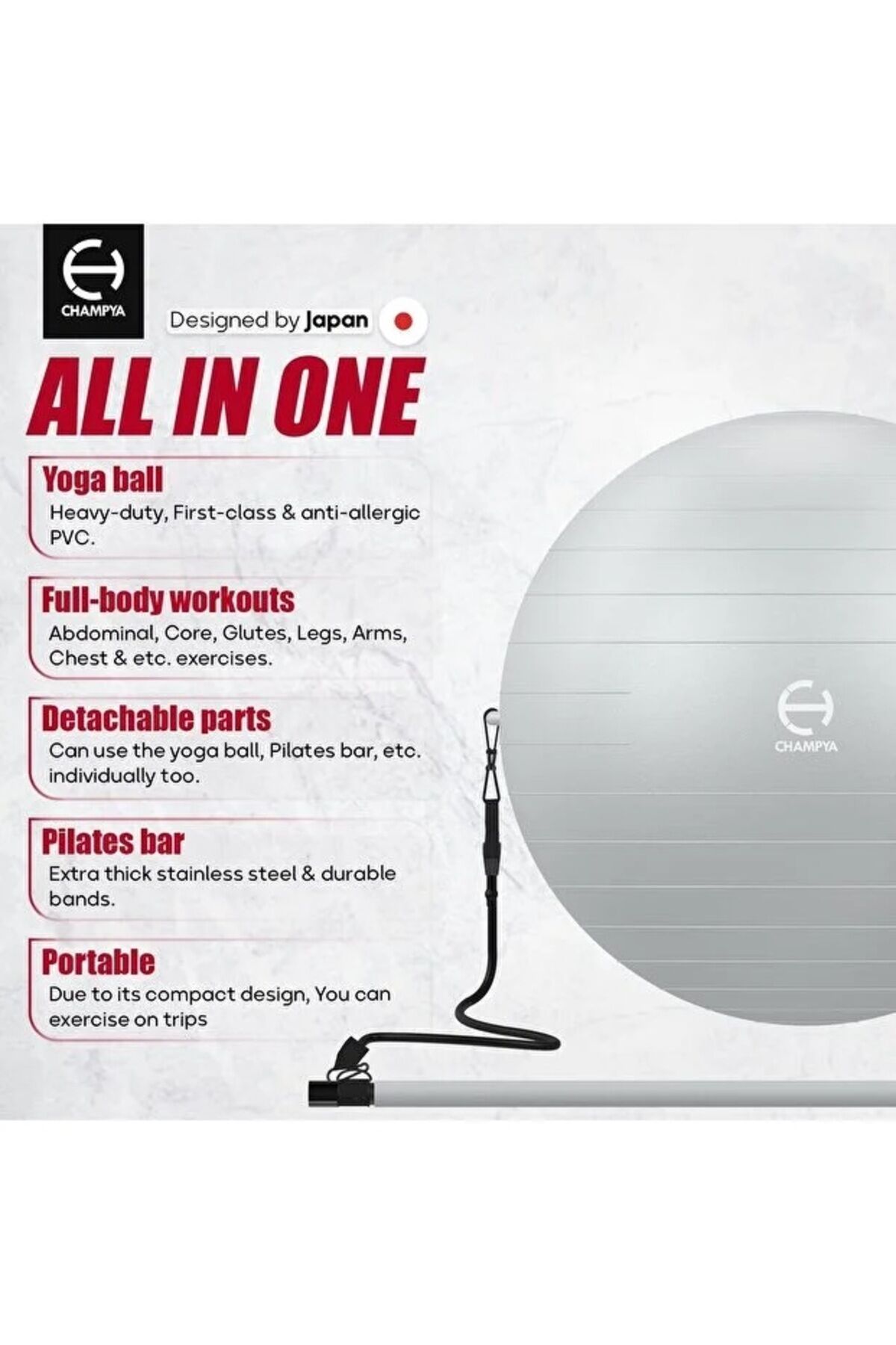VAYNE CHAMPYA Patlamaya Dayanıklı Yoga Fitness Topu Seti | Evde Core Güçlendirme, Evde Pilates Seti -Gri