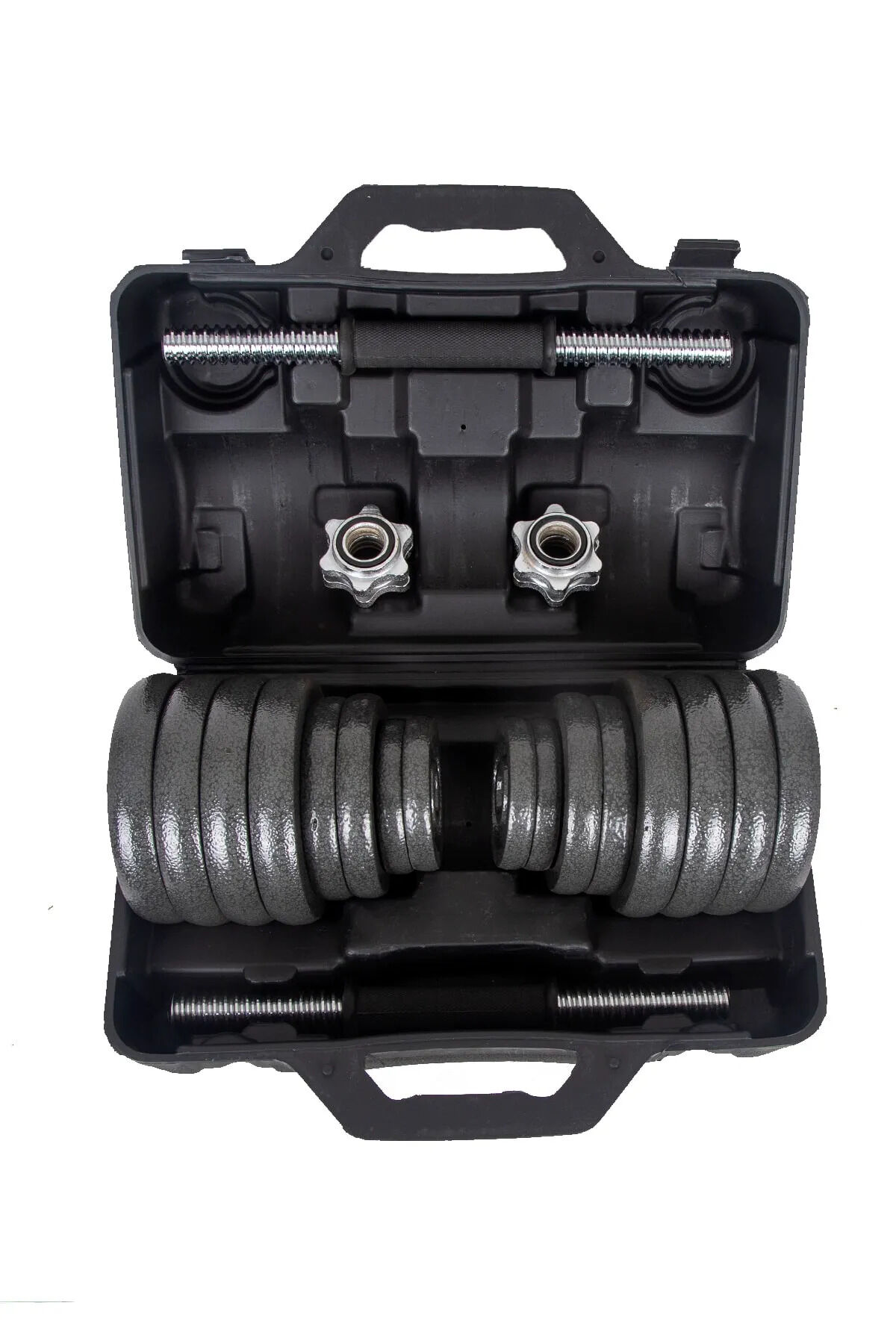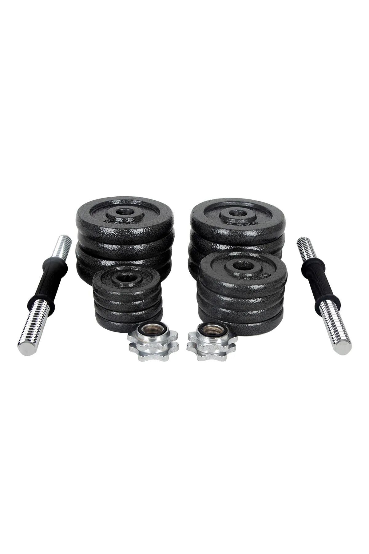 VAYNE Hepitop Dambıl Seti, 30 Kg, Taşıma Çantalı, Döküm Plakalar, 2 Adet 34 Cm Krom Bar, Siyah Renk
