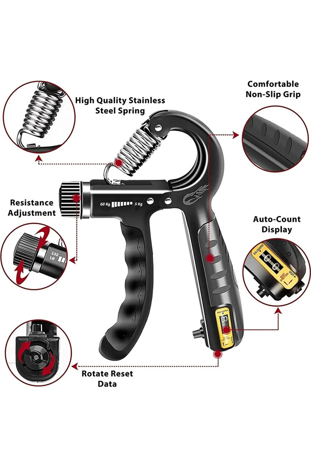 VAYNE Orijinal Sayaçlı El Yayı 60 kg - 5 kg Ayarlanabilir El Yayı Bilek Kas Güçlendirici Siyah