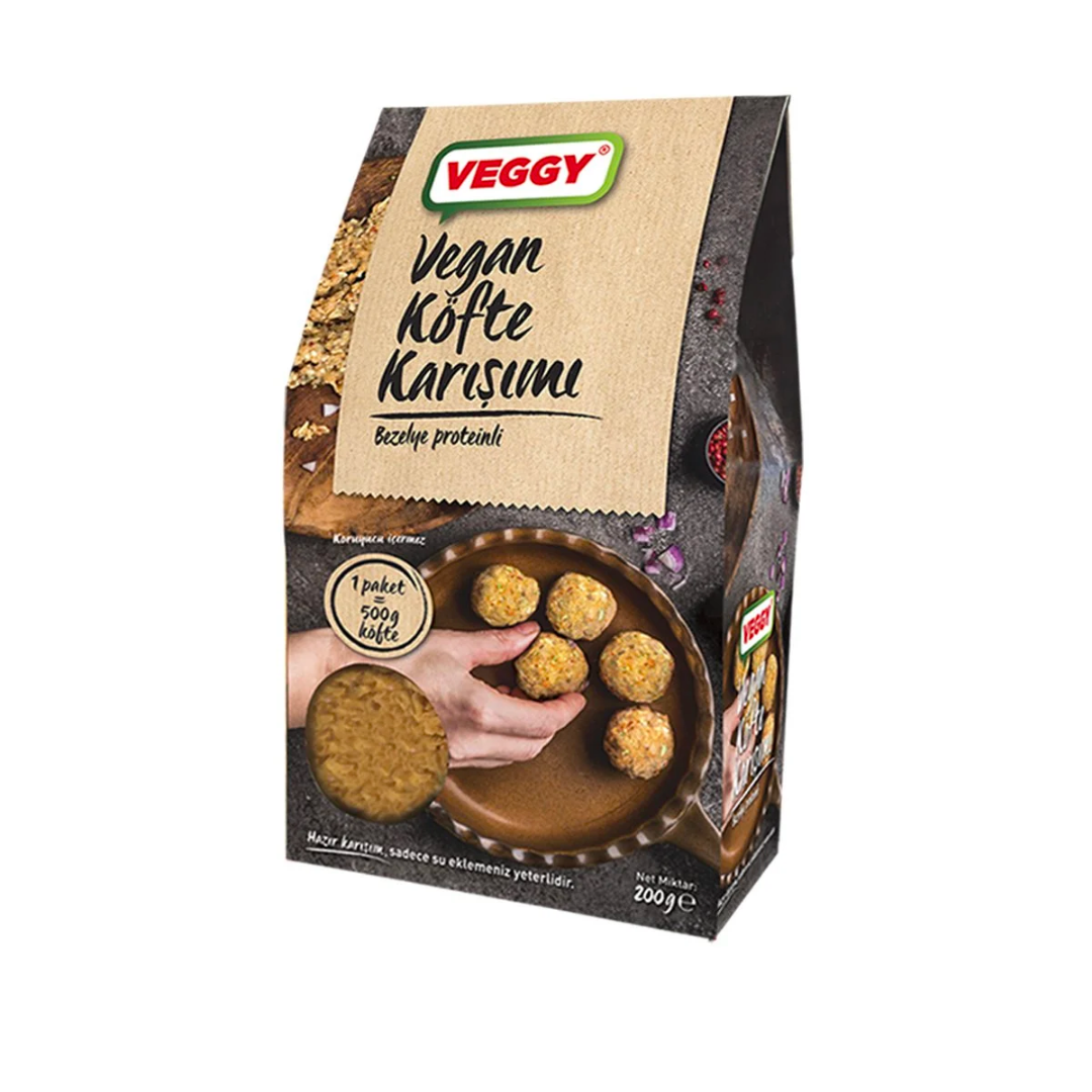 Yüksek proteinli bezelye kıymasından, sebzelerle harmanlanan, leziz lokmalar yaratabileceğiniz bir vegan köfte harcıdır.
