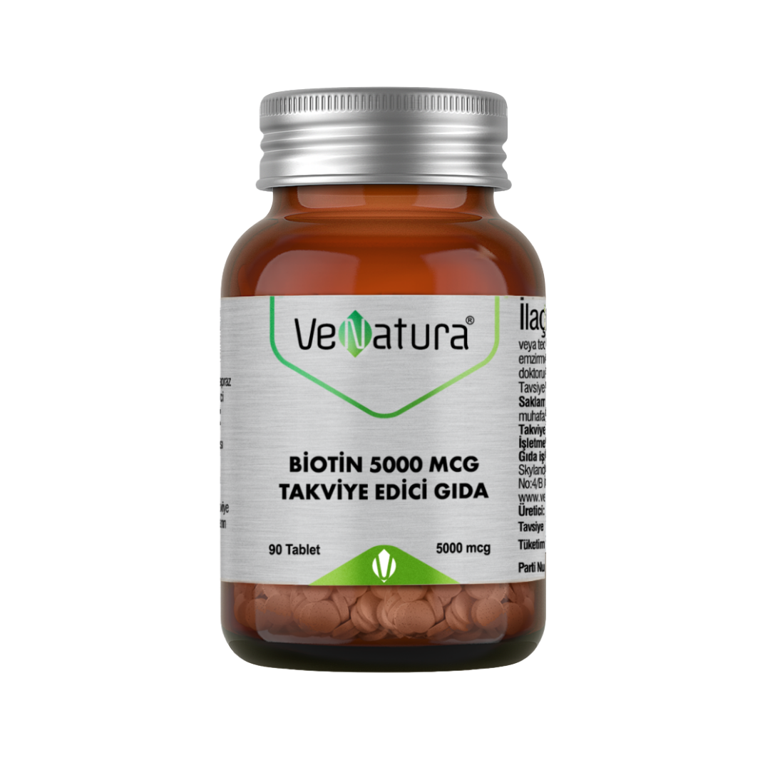 Venatura Biotin 90 Tablet, biotin takviyesi içeren takviyelerin arasında yer alır. Her tabletinde 5000 mcg biotin desteği sunan Venatura Biotin 90 Tablet, tablet formu sayesinde pratik bir kullanım avantajı sunar.