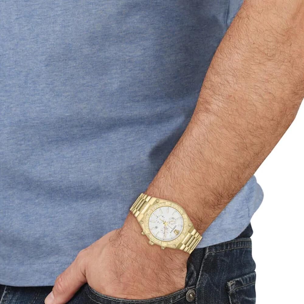 Kasa Çapı: 46 mm - Kasa Şekli: Yuvarlak - Kasa Materyali: Çelik - Kasa Rengi: Altın - Kordon Materyali: Çelik - Kordon Rengi: Altın- Kadran Rengi: Gümüş - Kadran Işığı: Yok - Taş: Yok - Çalışma Şekli: Analog - Teknolojisi: Quartz - Takvim: Var - Kronometre: Var - Alarm: Yok - Cam Özelliği: Safir - Özellik: - Su Geçirmezlik: 5 ATM - Garanti Süresi: 2 Yıl - Cinsiyet: Erkek
