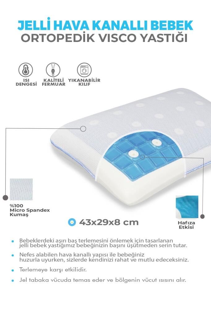 • Bebeklerdeki aşırı baş terlemesini önlemek için tasarlanan jelli bebek yastığımız bebeğinizin başını üşütmeden serin tutar.
