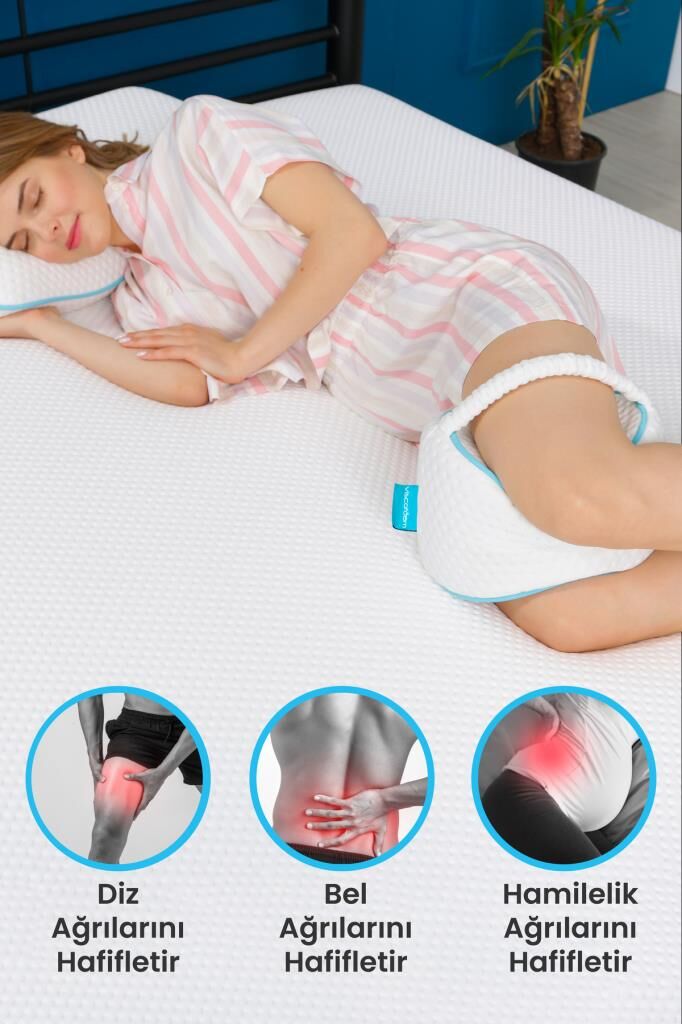 Bel ağrısı, kas krampları, varisli damarlar ve siyatik hastalıklarından müzdarip kişilerde sorunları azaltmaya yardımcı olur.dizlerinizin arasına bir yastık yerleştirmek doğru anatomik uyum sağlayarak bacaklar, kalça, diz ve omurgayı konumlandırarak alt bedene destek olur.