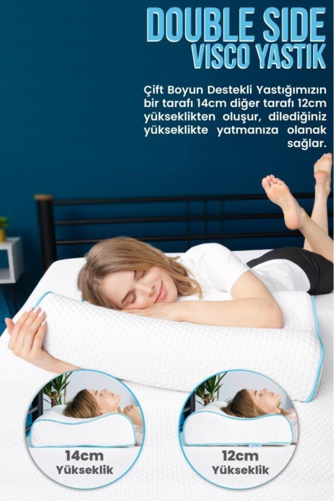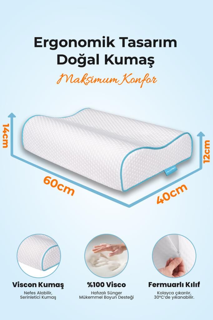 Malzeme: Visco (hafızalı sünger)– vücut ısısına duyarlı, baş ve boyun şeklini alır.