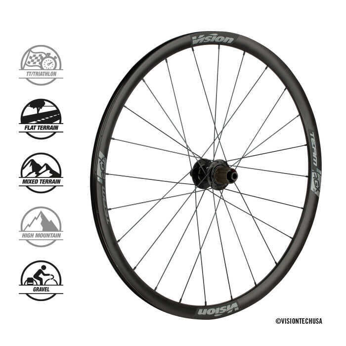 Çok yönlü Vision Team i23 Aero Gravel tekerlek seti, 30 mm derinliğinde profile ve 23 mm'lik darbe yumuşatıcı iç genişliğe sahip sert ama aynı zamanda hafif alüminyum jantlara sahiptir. Bu arada, CNC ile işlenmiş göbekler, düzgün yuvarlanma özelliklerini garanti eden, önde 2 ve arkada 4 sızdırmaz kartuş yatağının yanı sıra Centerlock fren diski montajıyla donatılmıştır.Bu el yapımı tekerleklerin Tubeless Ready jantları, önde 21 ve arkada 24 olmak üzere kanatlı aero jant telleri aracılığıyla göbeklere bağlanır ve kendinden kilitlenen ABS nipellerle kilitlenir.