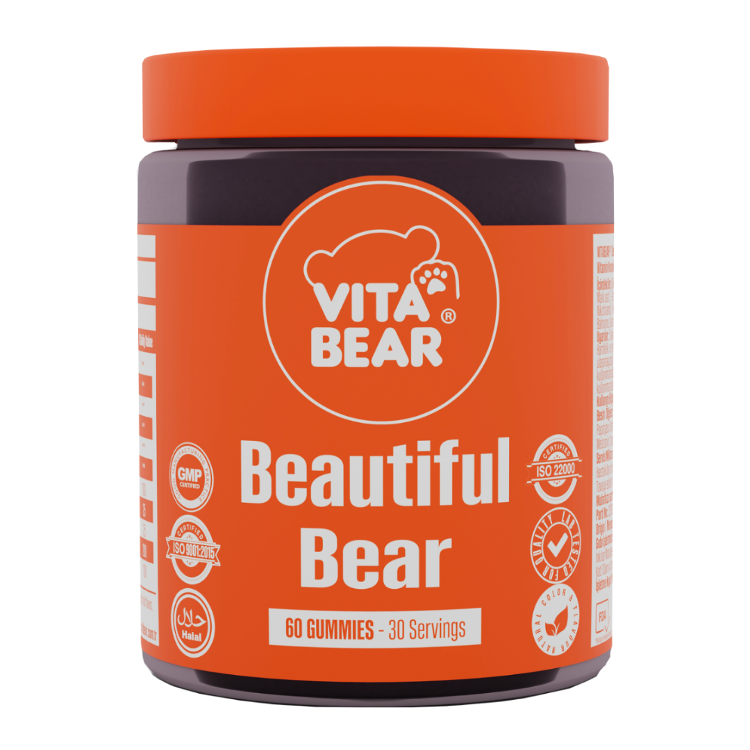 Beautiful Bear; cildin, saçların ve tırnakların yenilenmesinin yanı sıra sağlıklı ve güçlü olmasına yardımcı olur. Cildimize esneklik ve kuvvet kazandırarak, cildimizin yapısını ve işlevini korur. Ciltteki yaşlanma çizgileri ve kırışıklıkları azaltır, nemini arttırır.