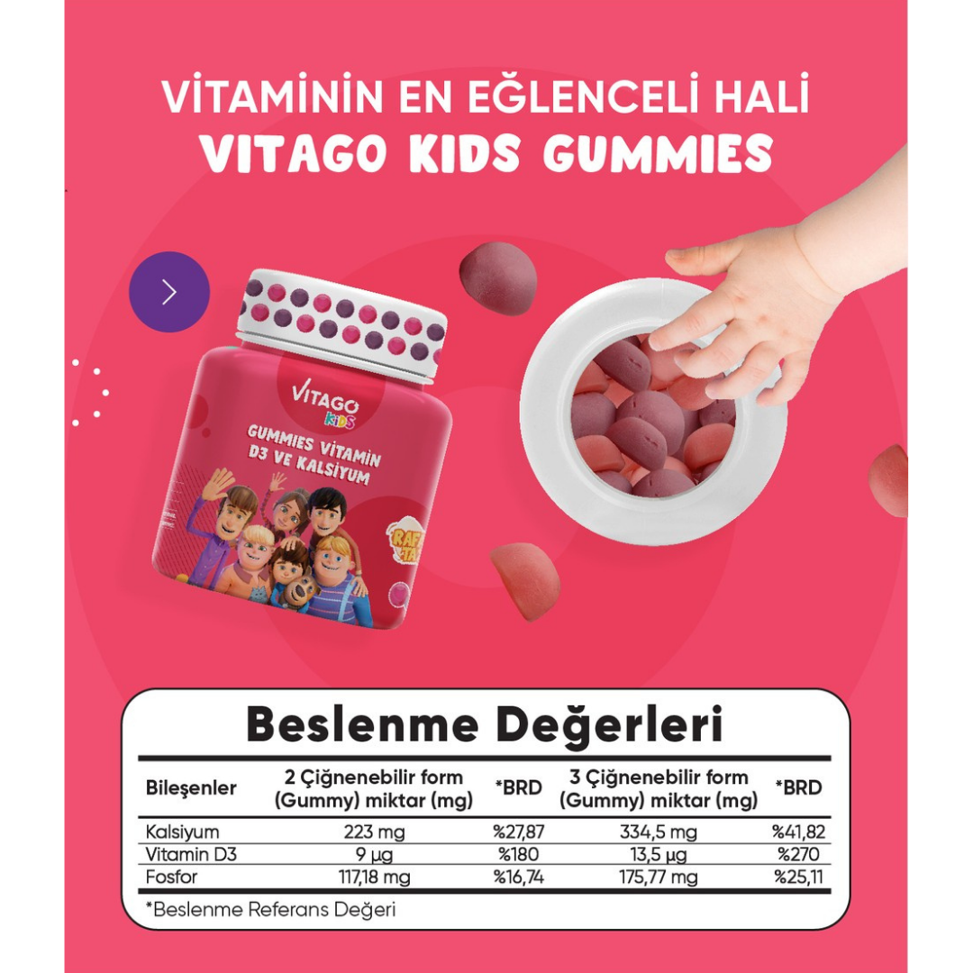 Kullanım Önerileri: 4-10 yaş grubu çocuklar için günde 2 çiğnenebilir form (gummy); 11yaş ve üzeri yetişkinler için günde 3 çiğnenebilir form (gummy) tüketilmesi tavsiye edilir.