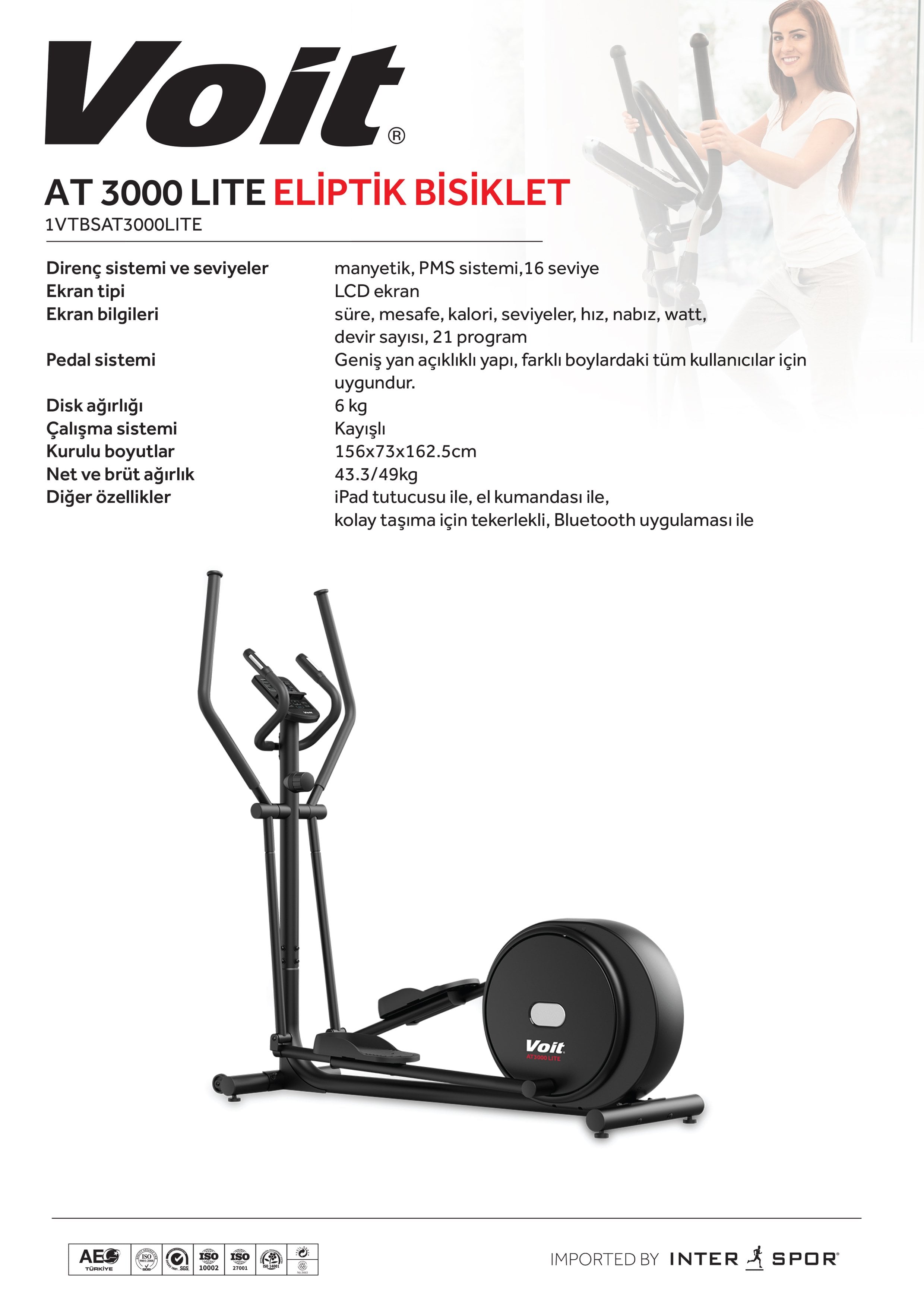 Voit AT3000 Lite Eliptik Bisiklet orta ölçekli siteler, spor salonları ve diğer spor merkezleri için özel olarak tasarlanmıştır.