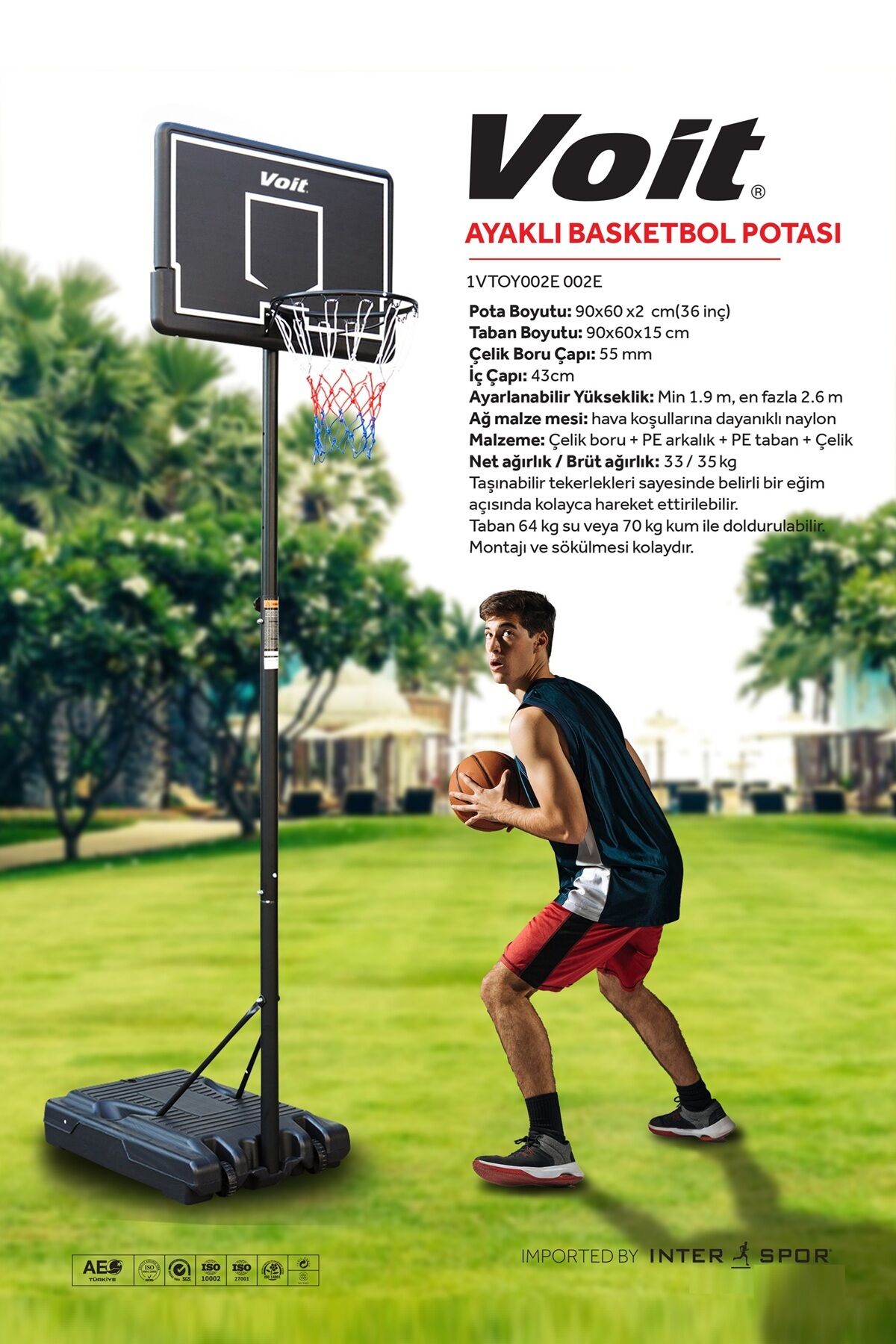 Voit 002E Ayaklı Basketbol Potası Yüksekliği Ayarlanabilir, Tekerlekli Taşınabilir