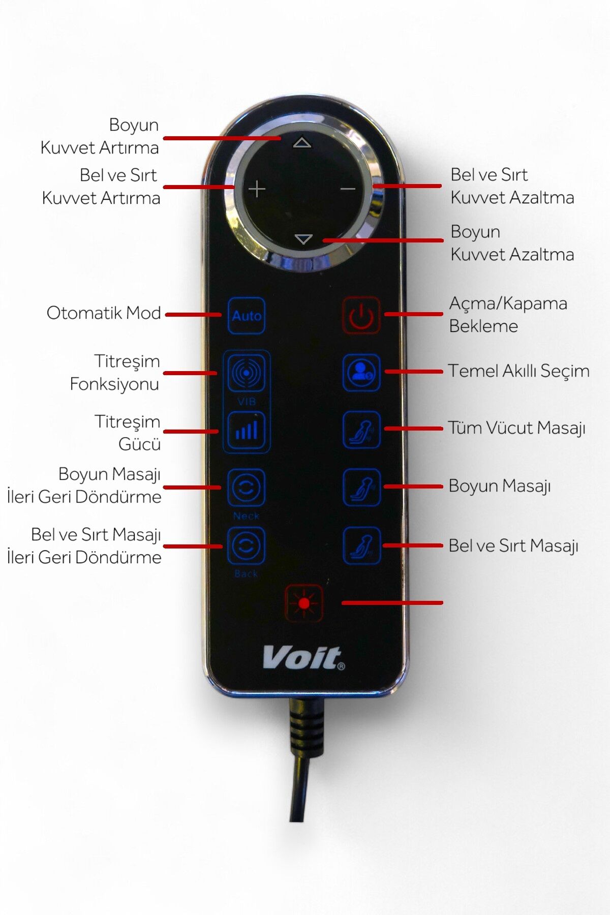 Boyun masajı: Boyun masajını açmak ve ardından kapamak için bu tuşa basın.